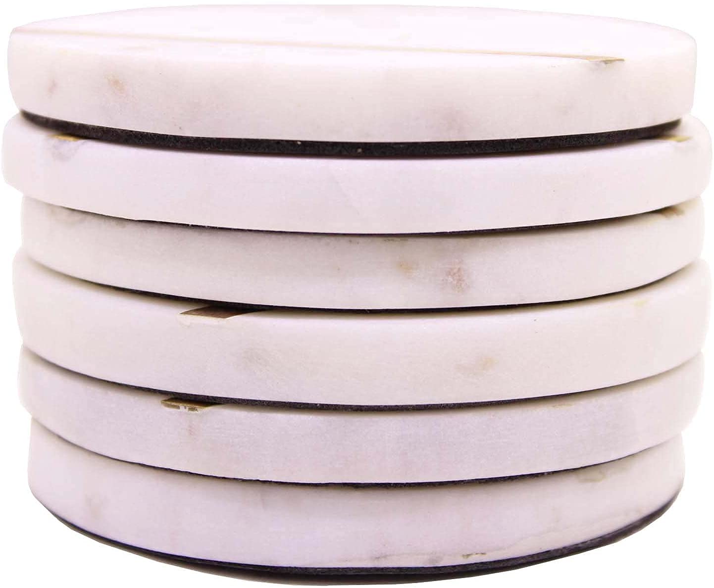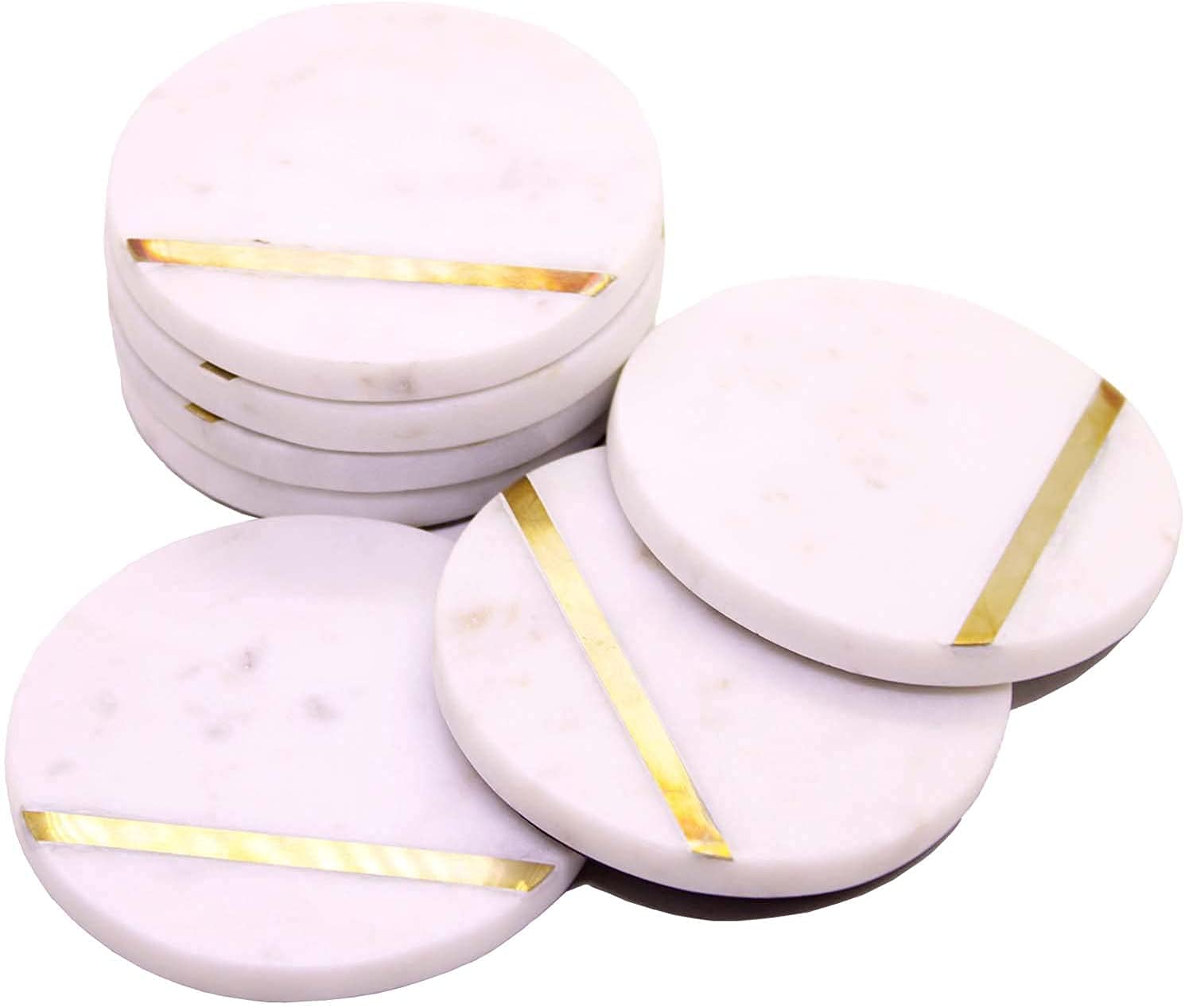 MARBLE INLAY ART AGRA - PACCHIKARI Round Shape White Colour Marble with Brass Strip Coasters Set of 6