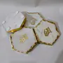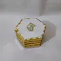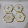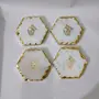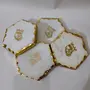 MARBLE INLAY ART AGRA - PACCHIKARI This Beautifully White Marble Gold foil Edges Hexa Shape Skull Brass Metal Sticker Design Coasters (Set of 4) for Cups Mugs Glasses (White)