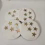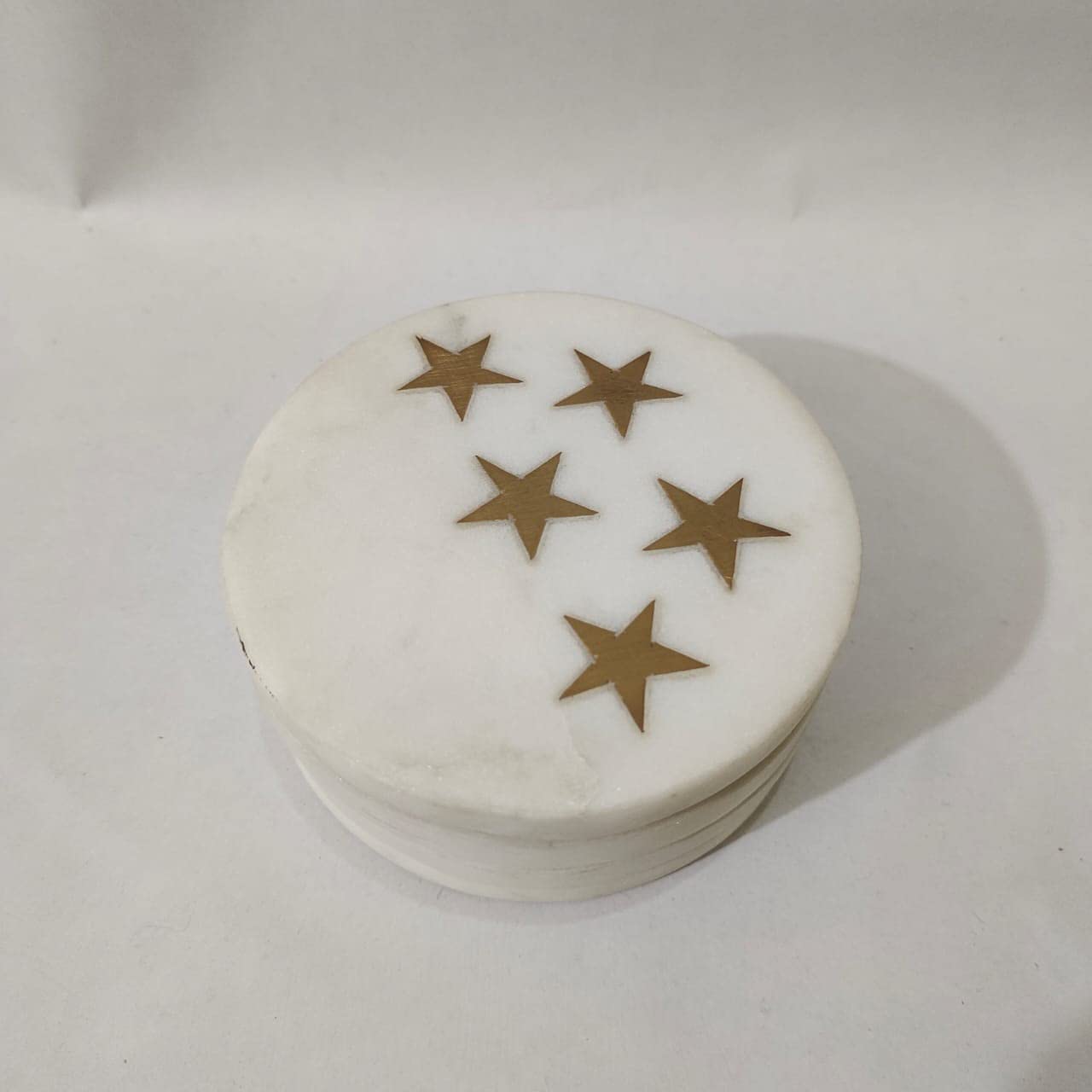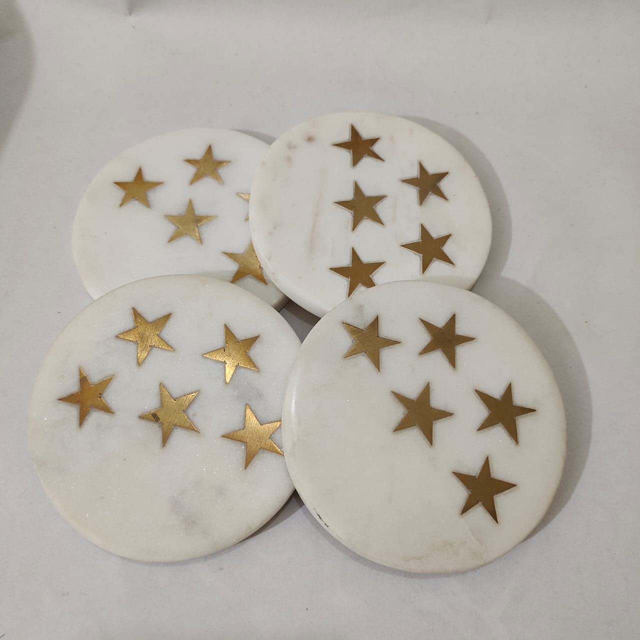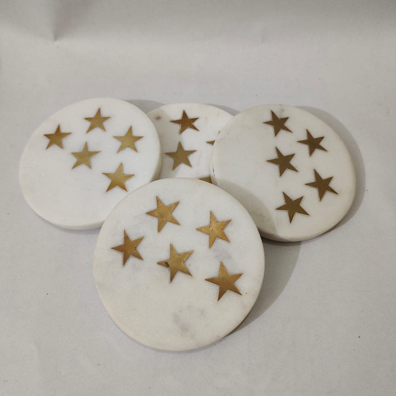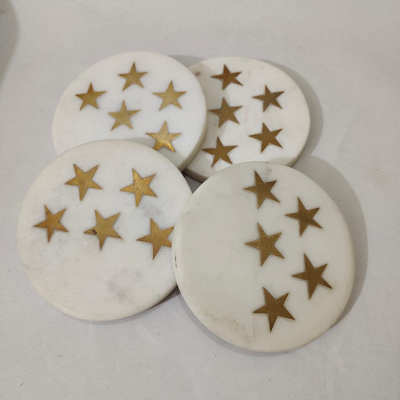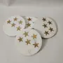 HomeKitchenDining setsCoaster SetMARBLE INLAY ART AGRA - PACCHIKARI White Marble Coaster Round and Stars Shape Brass Inlay (Set of 4) for Cups Mugs Glasses