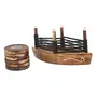 HomeKitchenDining setsCoaster SetMEENAKARI ENAMEL PRODUCTS Wooden Boat Tea Coaster Set of 6 with Stand for Tea Cups Coffee Mugs Beer Cans Bar Tumblers and Water Glasses