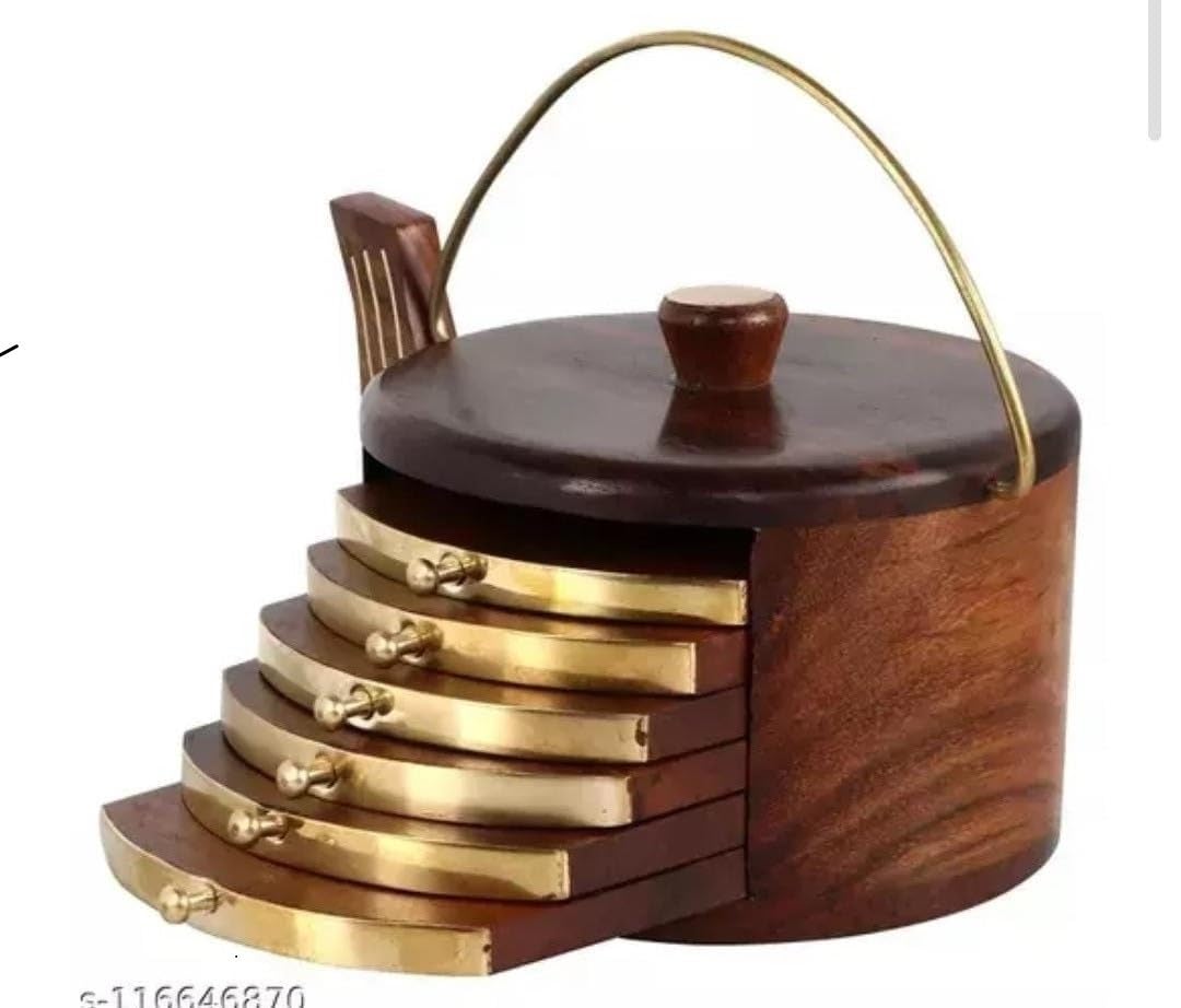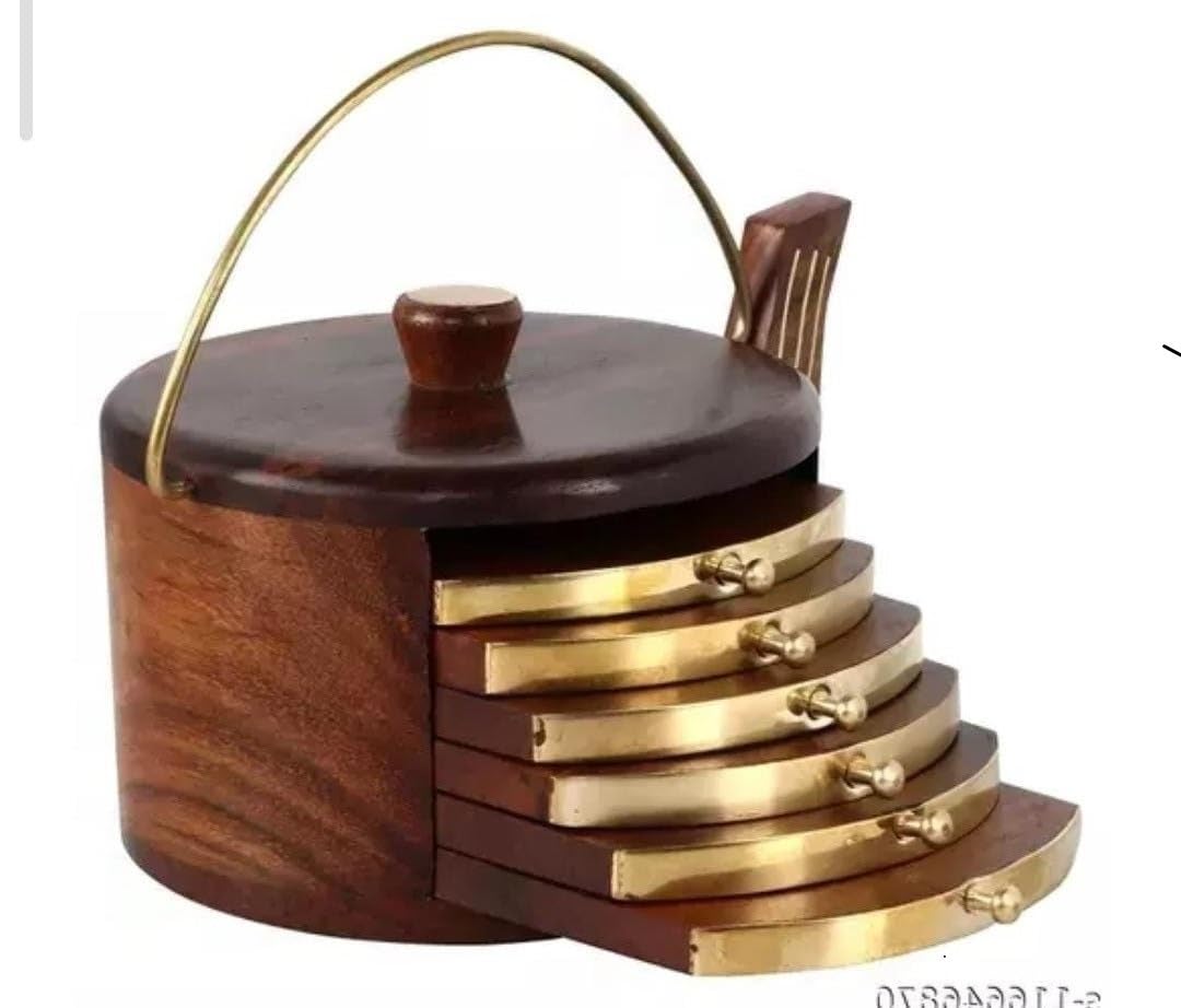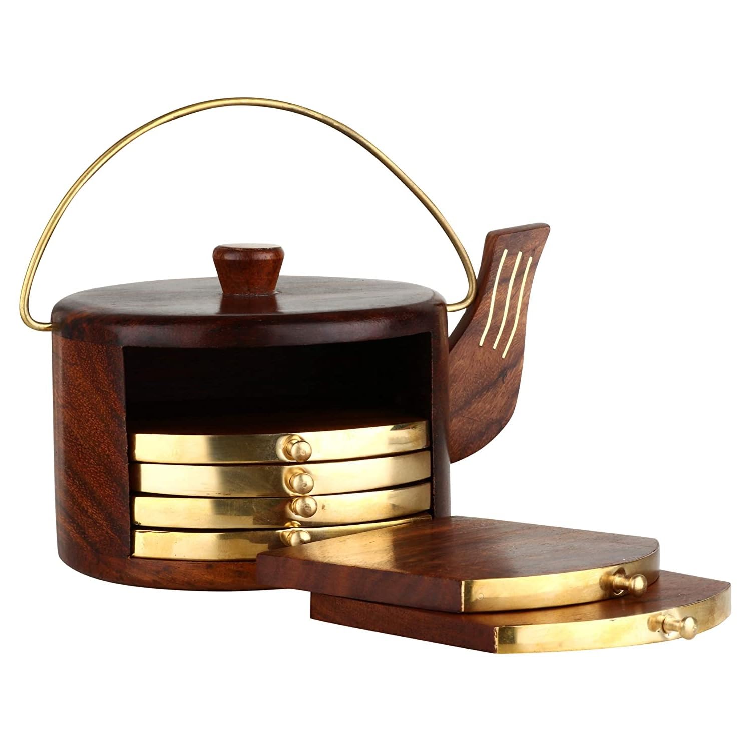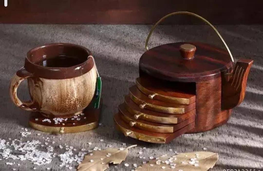 HomeKitchenDining setsCoaster SetSAHARANPUR HANDICRAFTS Wood Tea Coaster Set Dinning Table Accessories Propper Coaster Stand Wooden Coaster Set for Kitchen