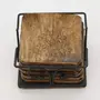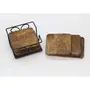 SAHARANPUR HANDICRAFTS Wooden Square Coaster Set of 6 with Decorative Iron Holder (Brown)