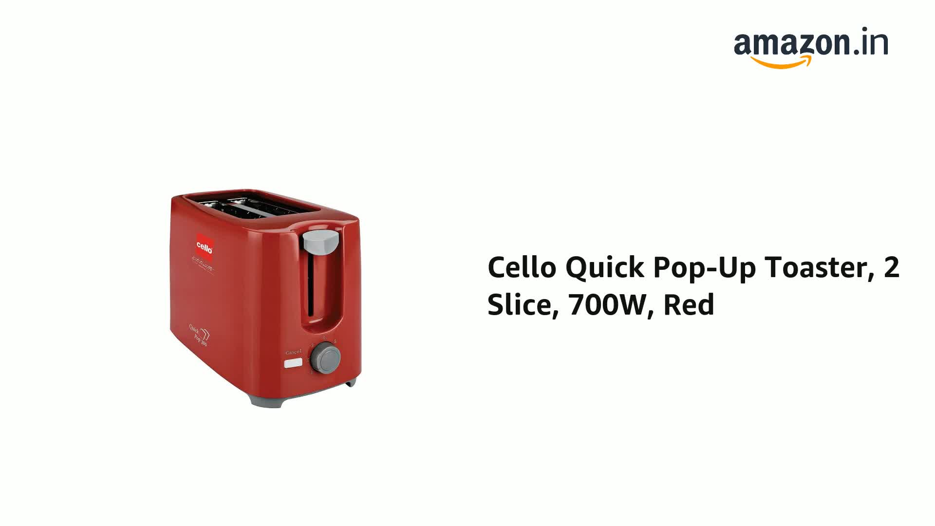 Cello Quick Pop-Up Toaster, 2 Slice, 700W, Red