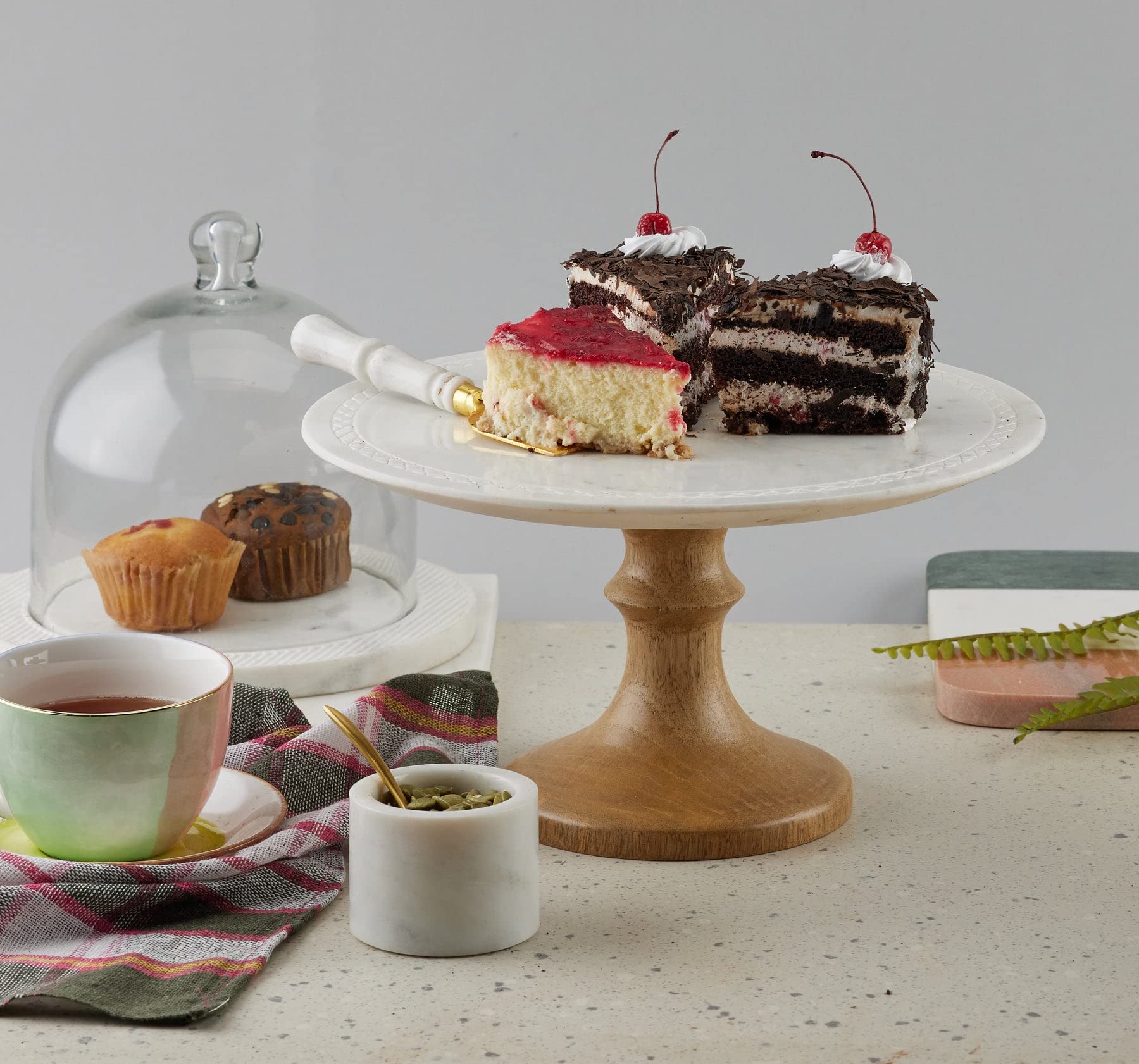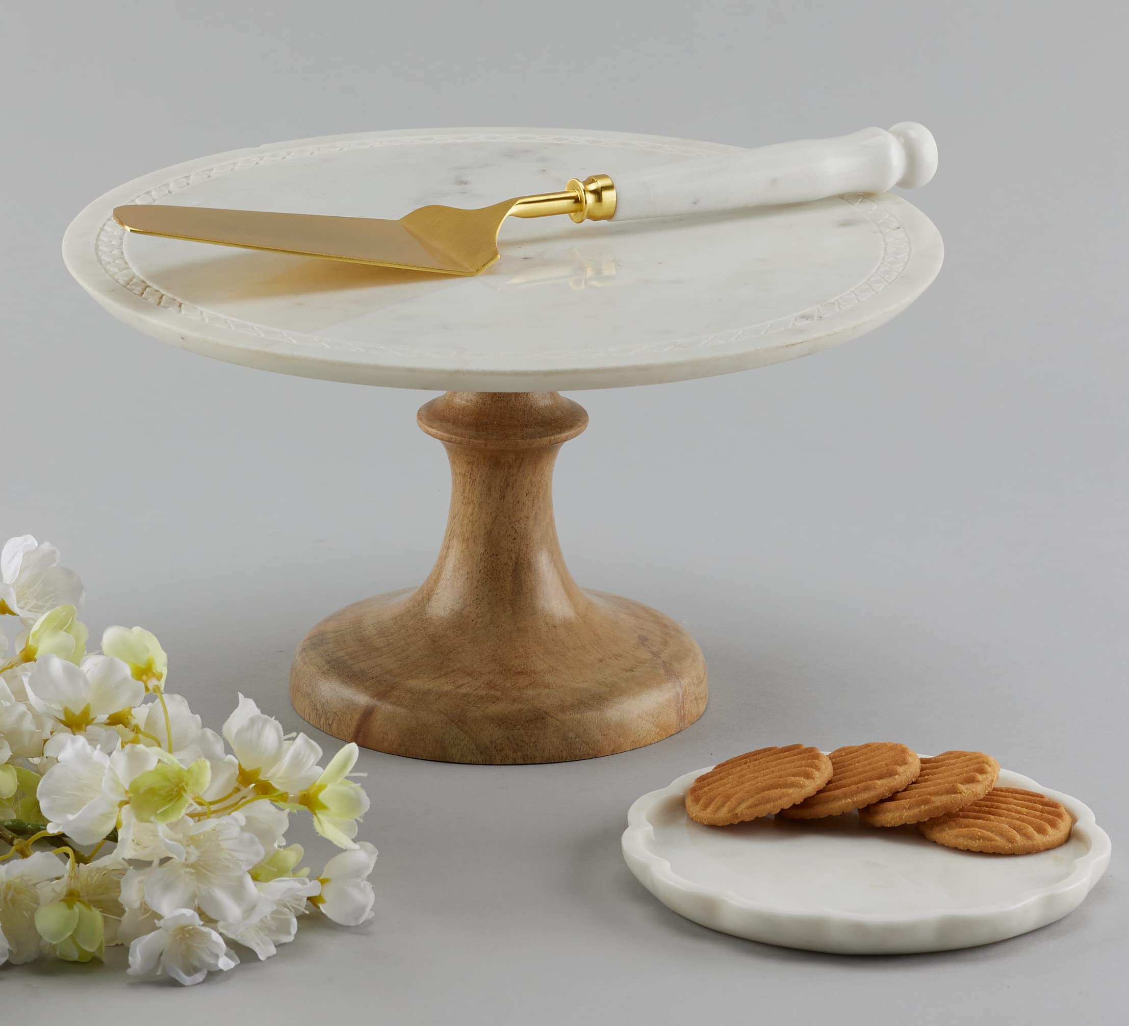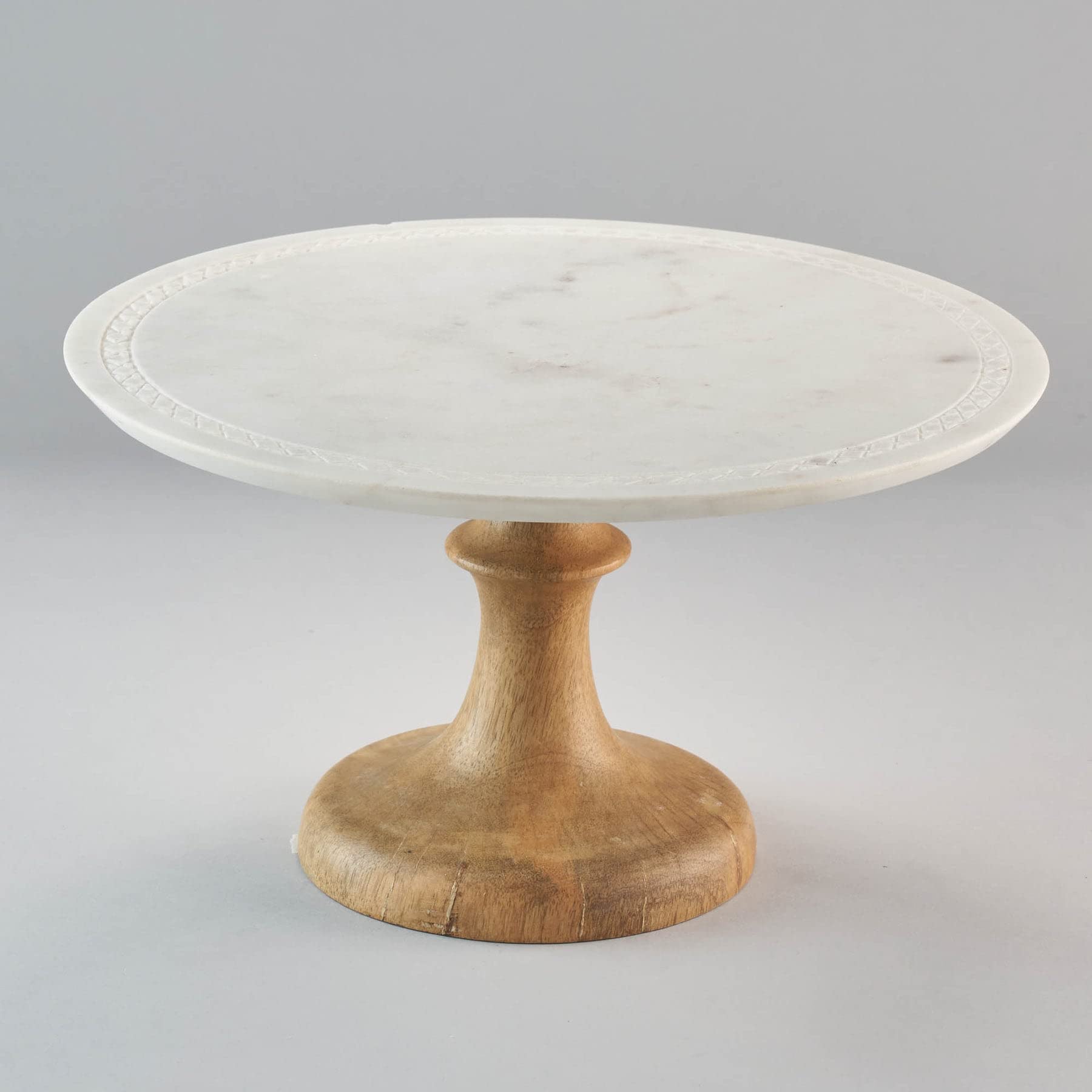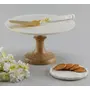 AGRA SOFT STONE CARVING PRODUCTS Ava Marble and Wood Cake Stand & Round Dessert Platter