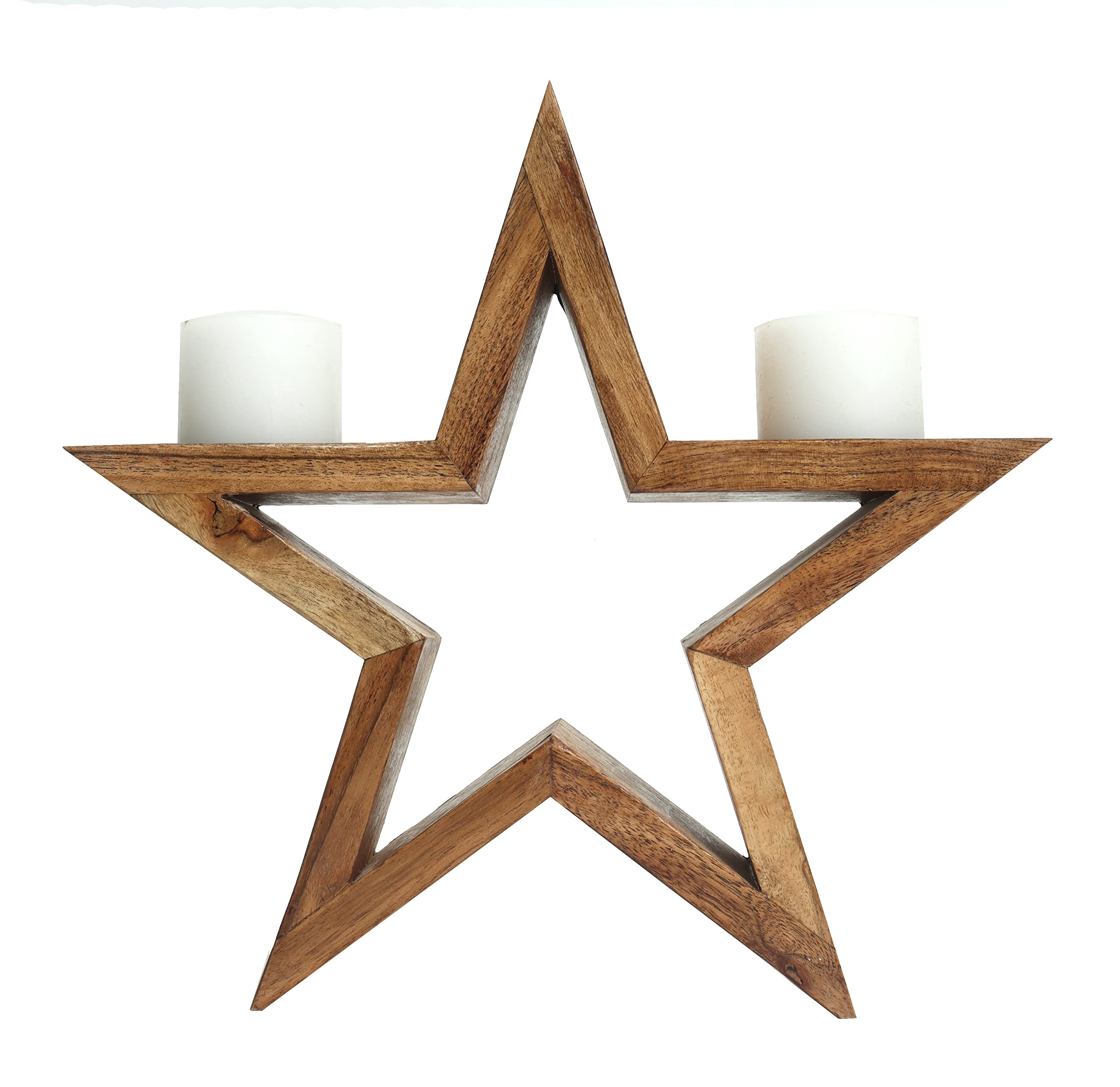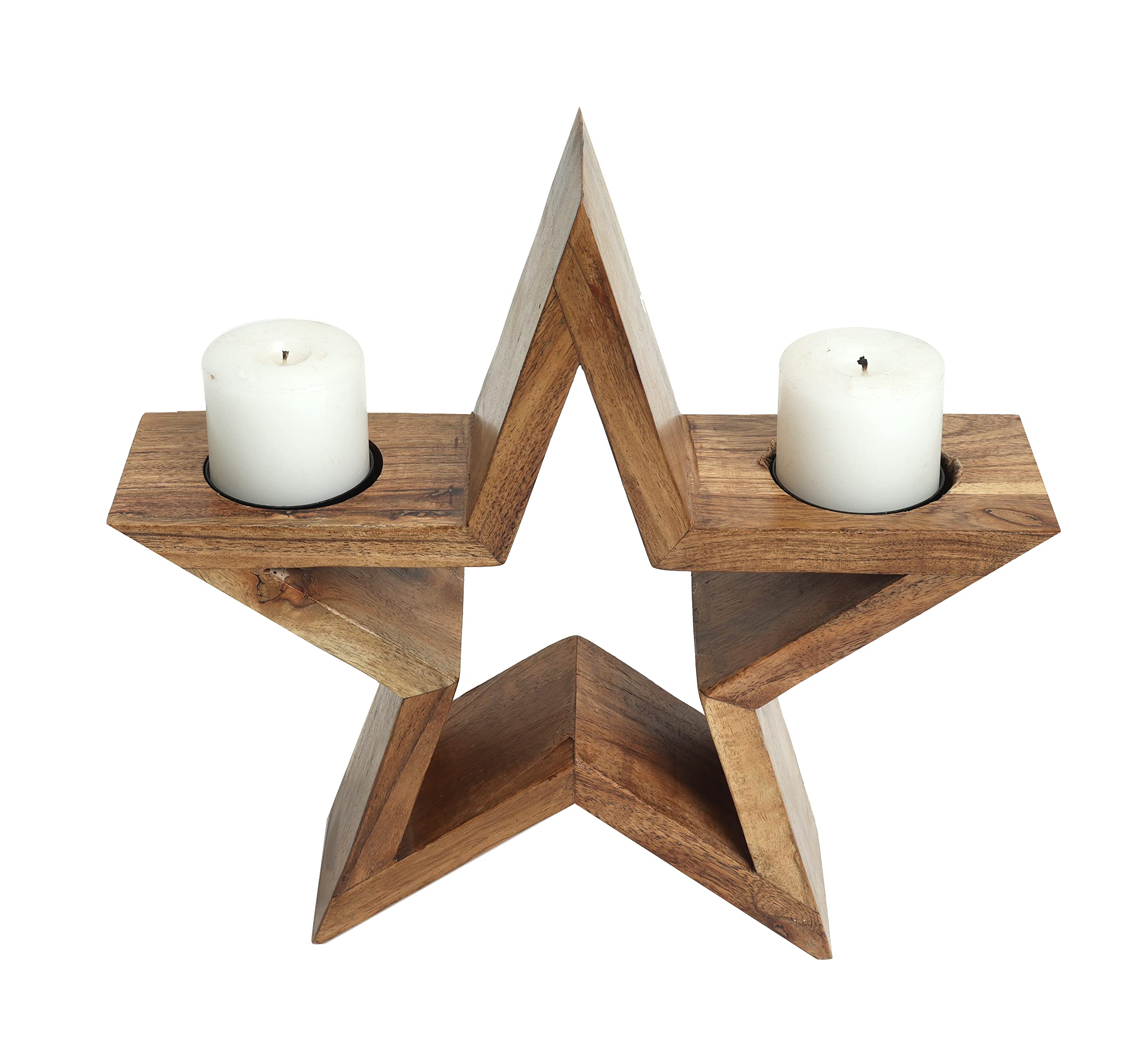 KHURJA POTTERY Wooden Candle Stand | Pillar Candle Holder | Wooden tealight Candle Holder - Star