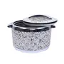 This is PUF insulated casserole and has inner stainless steel body. The PUF insulation keeps contents warm for long time. This casserole has lid with easy locking system.