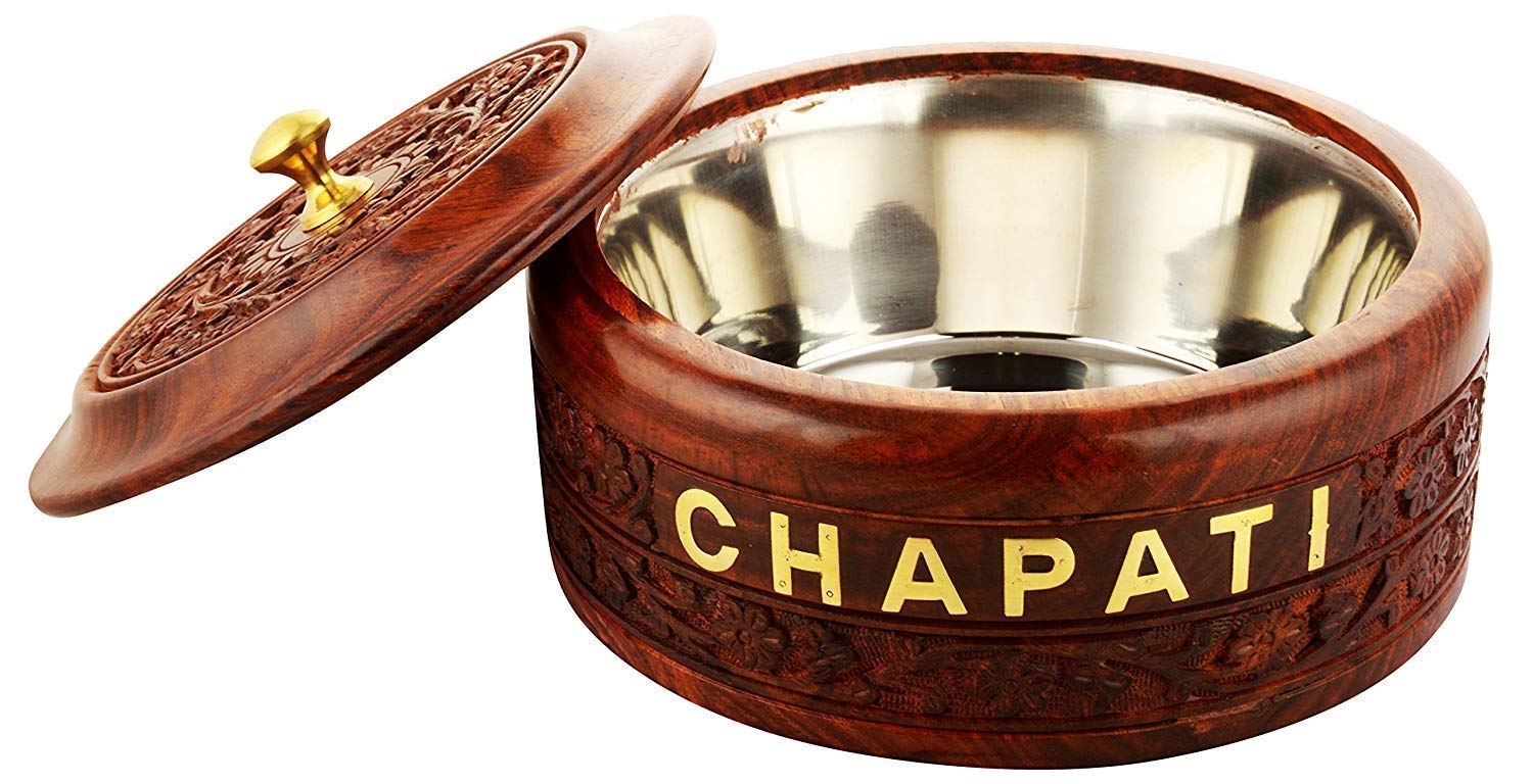 HomeKitchenServeware setsCasserolesMARBLE INLAY ART AGRA - PACCHIKARI Wooden Handicraft Box Pot Serving Bowl with Lid for Chapatis 9 Inches/Casserole Box with Steel