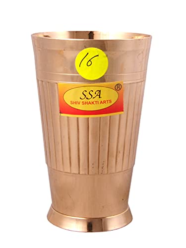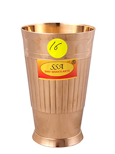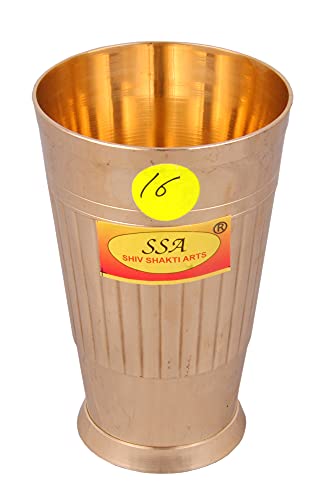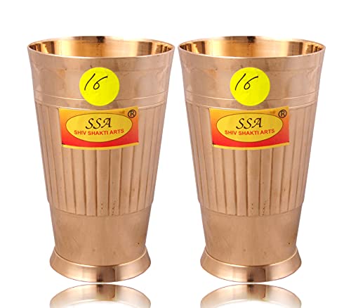 Shiv Shakti Arts Heavy Gauge Line Design Pure Brass Glass - (2 Pieces Set Big - 350 Ml Each Glass - No.16)