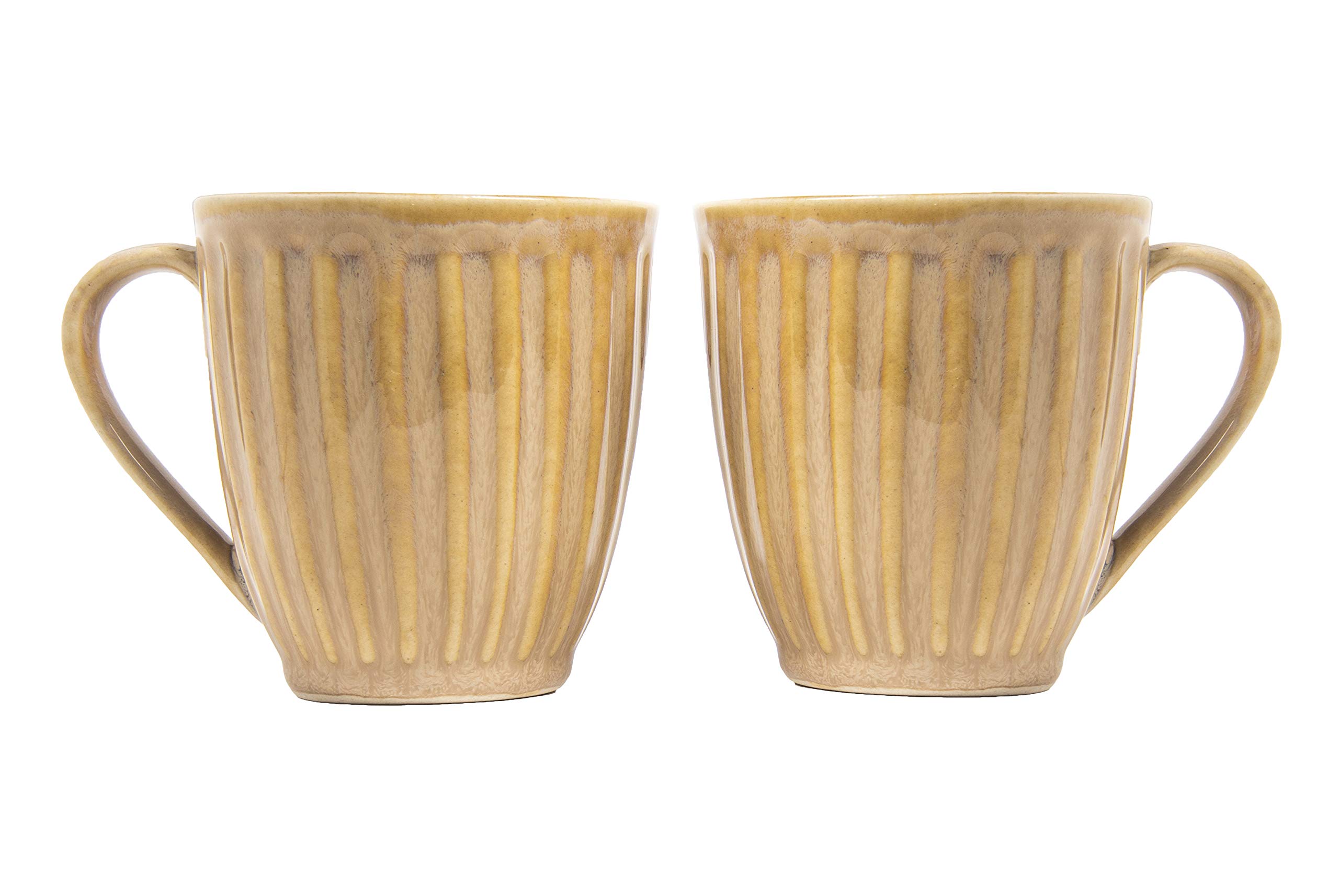 KHURJA POTTERY Ceramic Handcrafted Salmon Coffee Glazed Studio Pottery Tea/Coffee Mug Set of 2 (350 ML Microwave & Dishwasher Safe)