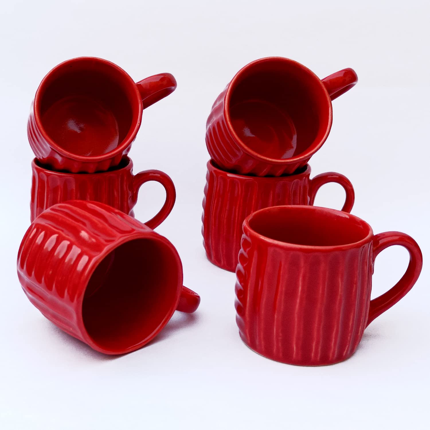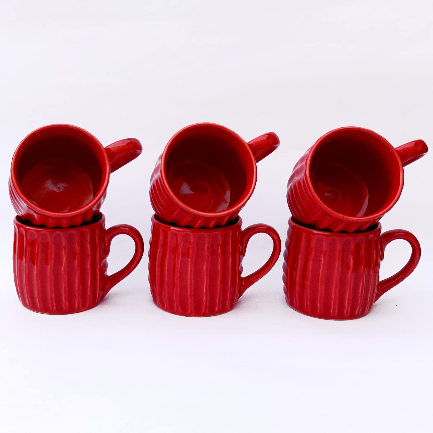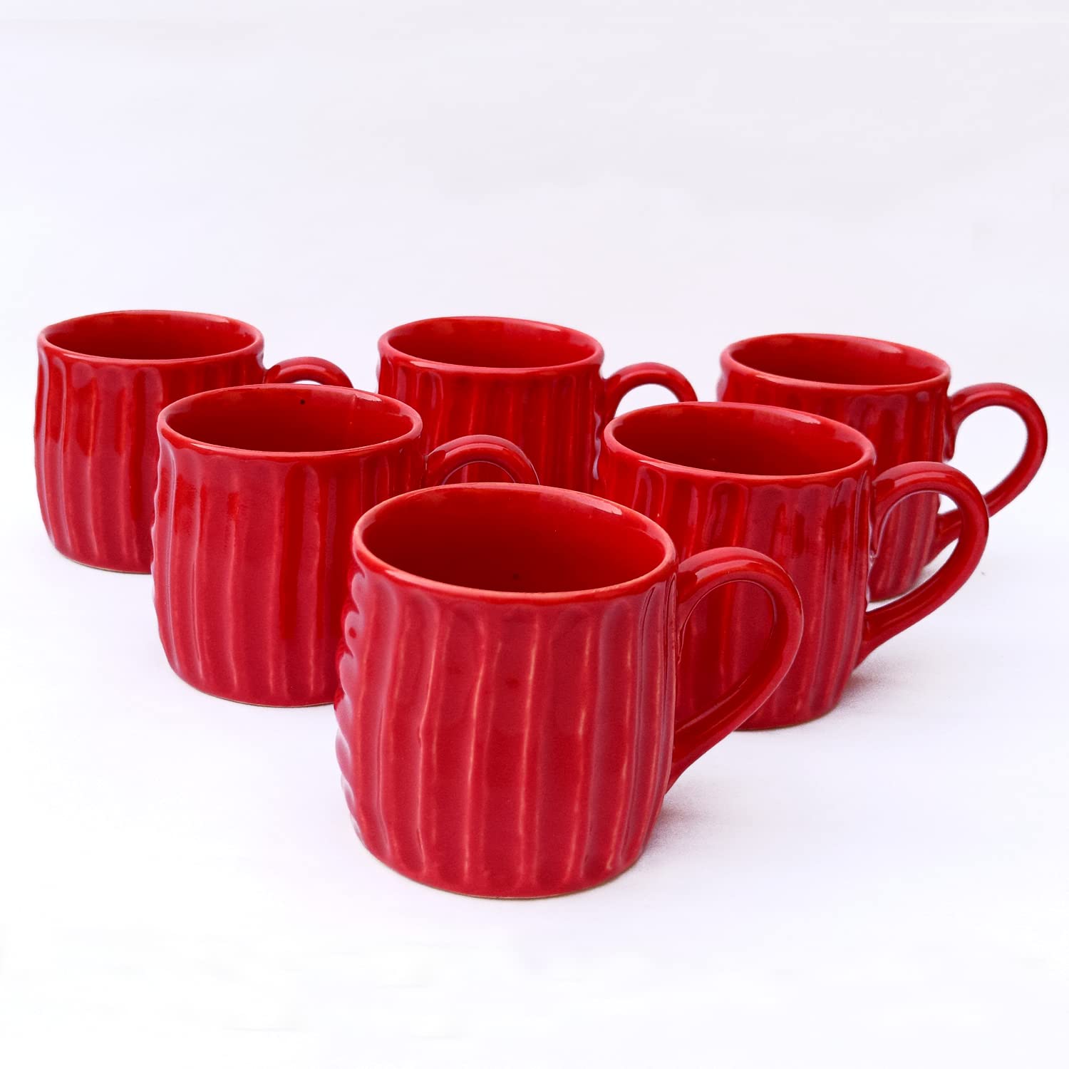 HomeKitchenServeware setsMugKHURJA POTTERY Coffee Tea Mugs Cups Set of 6 Studio Pottery Ceramic (Red 150 ml Each Microwave & Dishwasher Safe) | Tea | Hand Glazed & Handmade | Special Rare Edition for Gifting