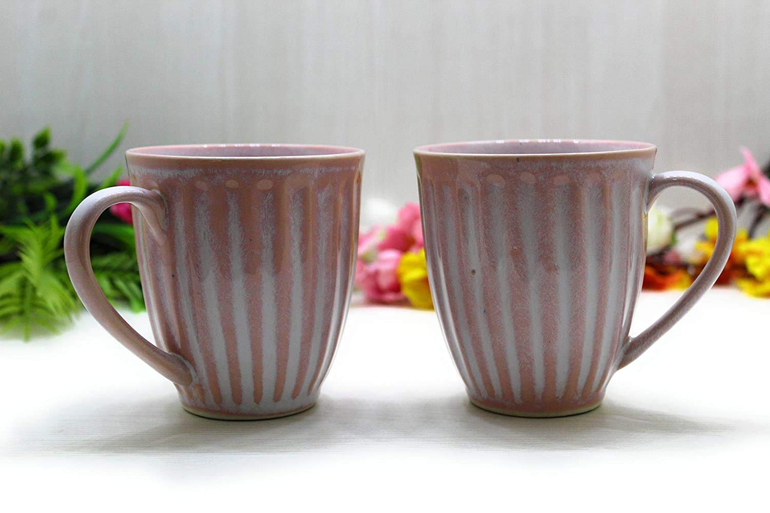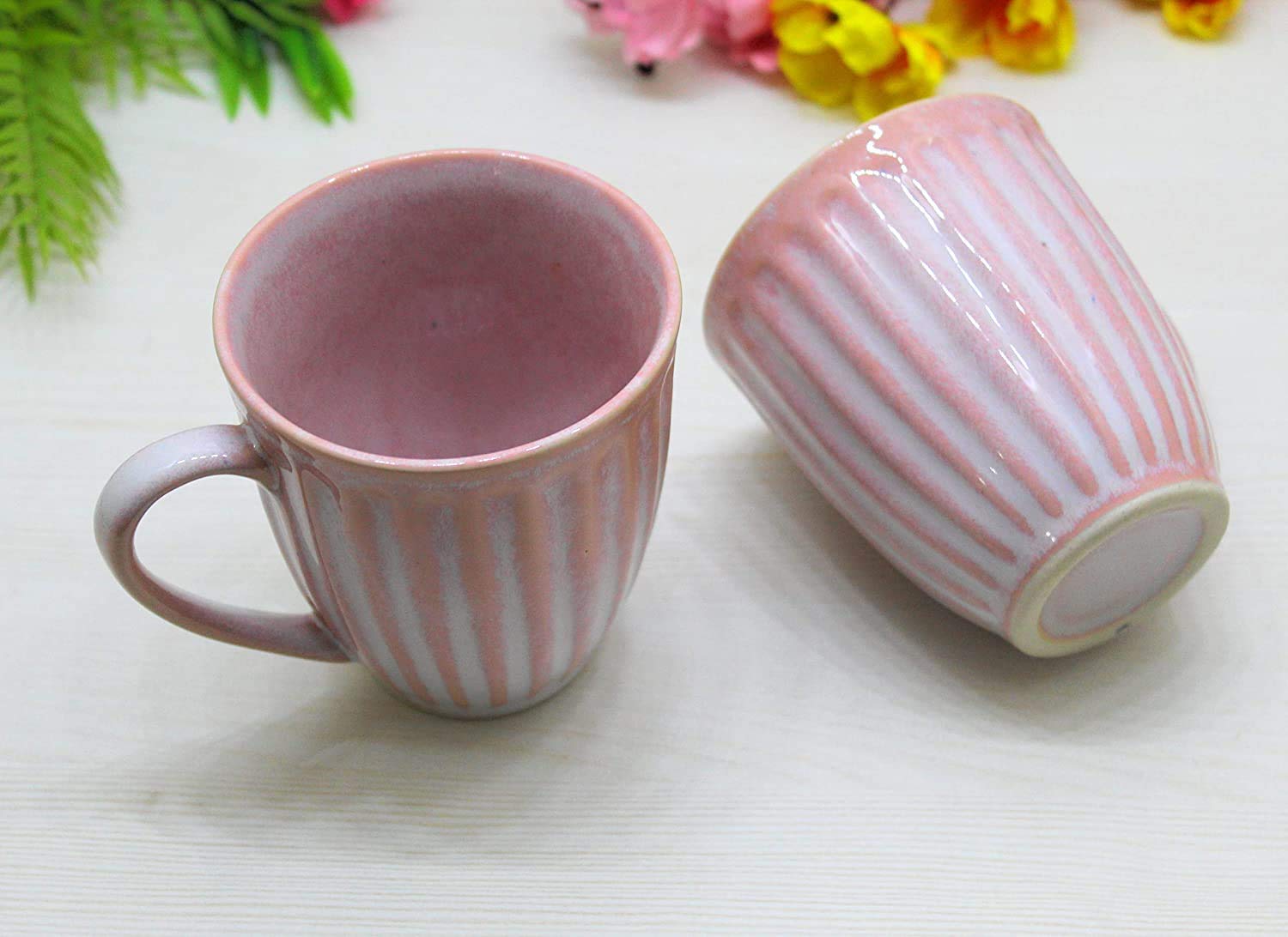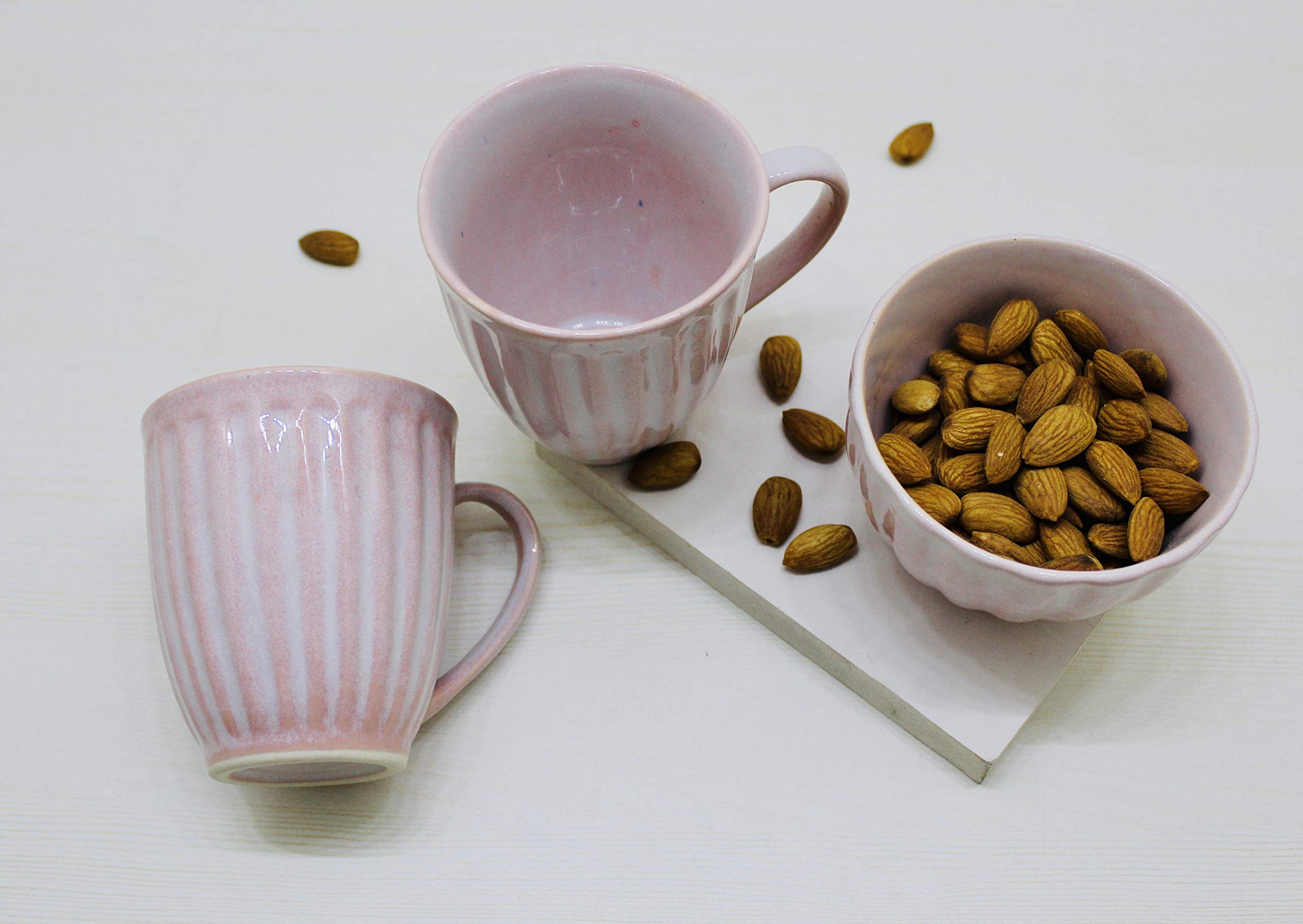 KHURJA POTTERY Handmade Ceramic 2 Cup or Mug with 1 Bowl for Serving Tea or Coffee with Snacks