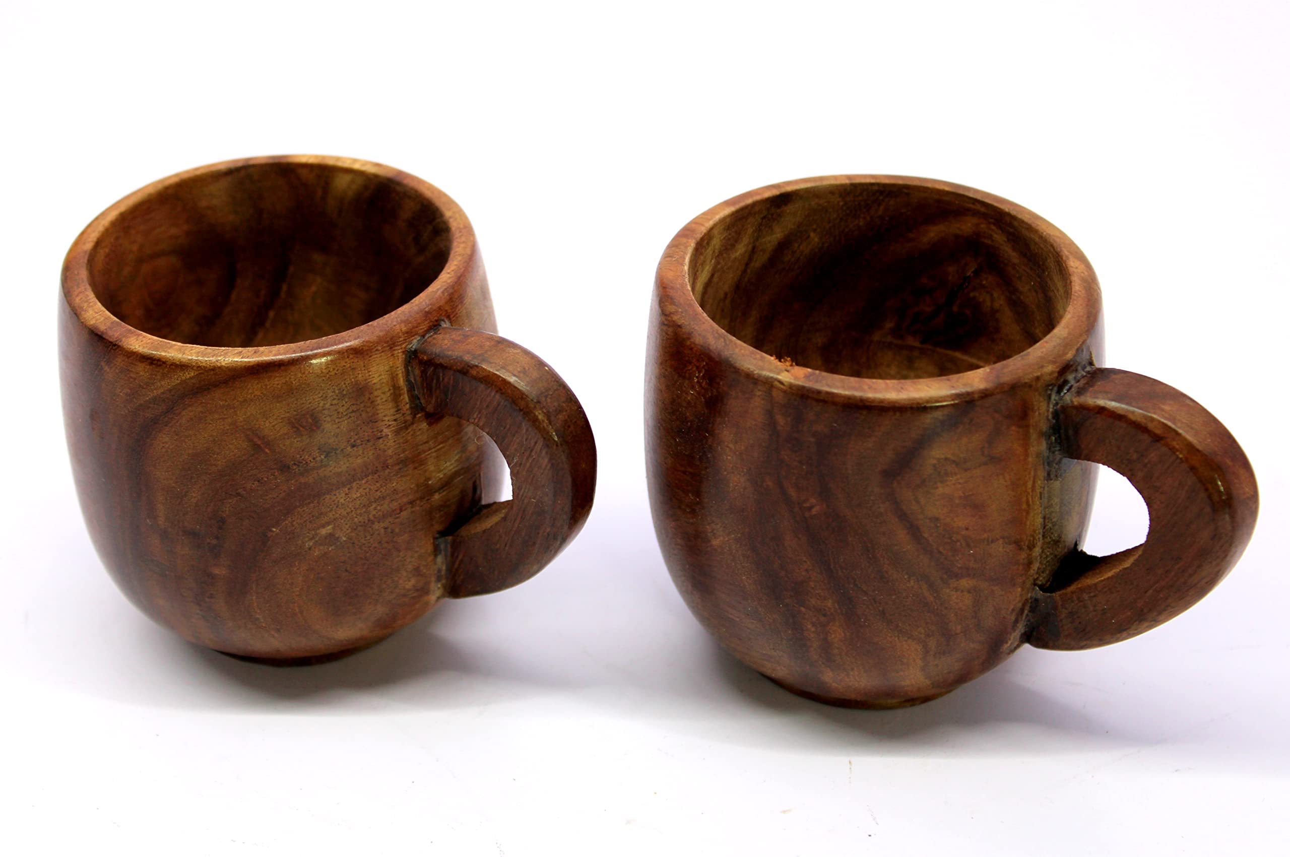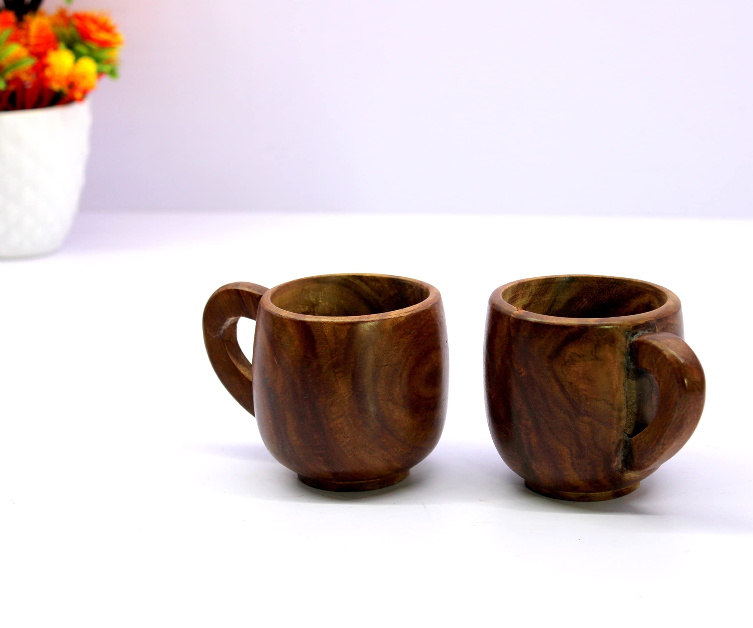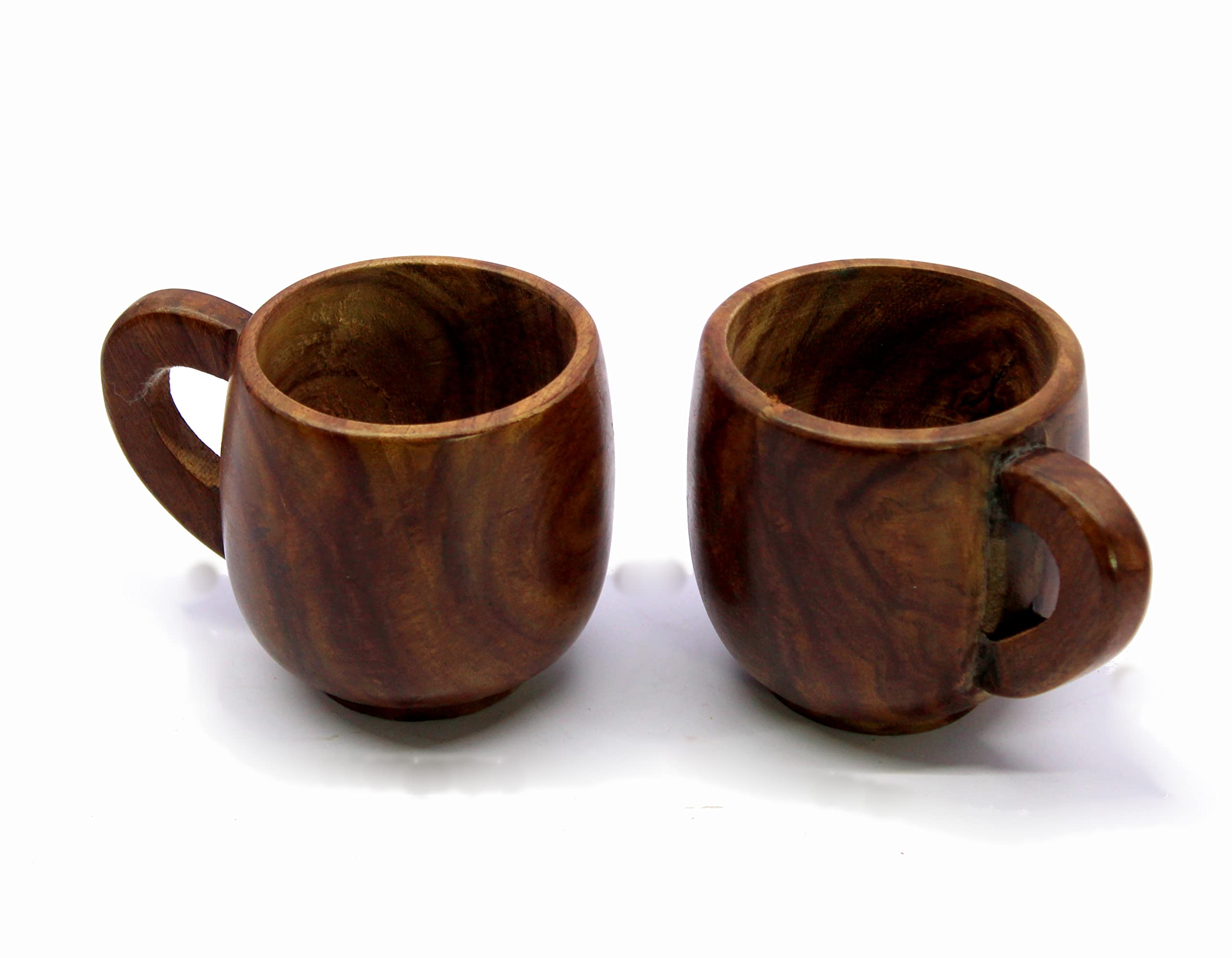 KLEO Wooden cups for tea/ coffee - Set of 2 Cups. These cups are handmade and come with handles for easy handling.