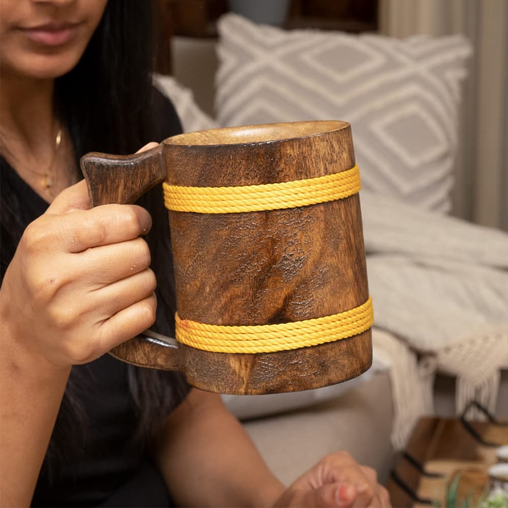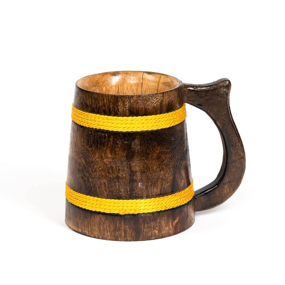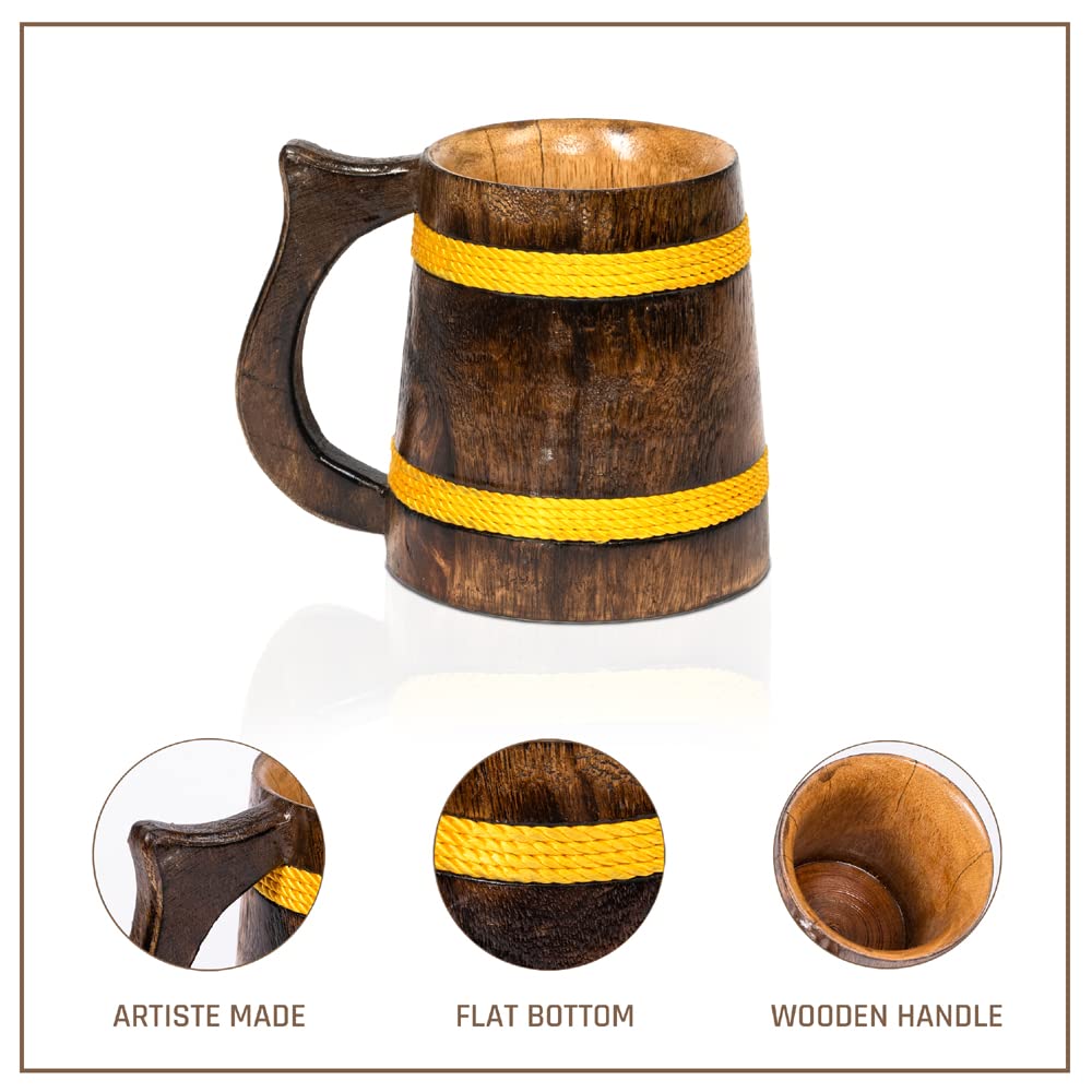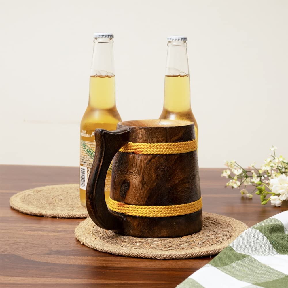 SAHARANPUR HANDICRAFTS Handcrafted Mango Wood Beer Mug | Eco-Friendly Antique Handmade Multipurpose Mug for Home Decor/Gift - Brown (Set of 1) (4.5x6 inches)