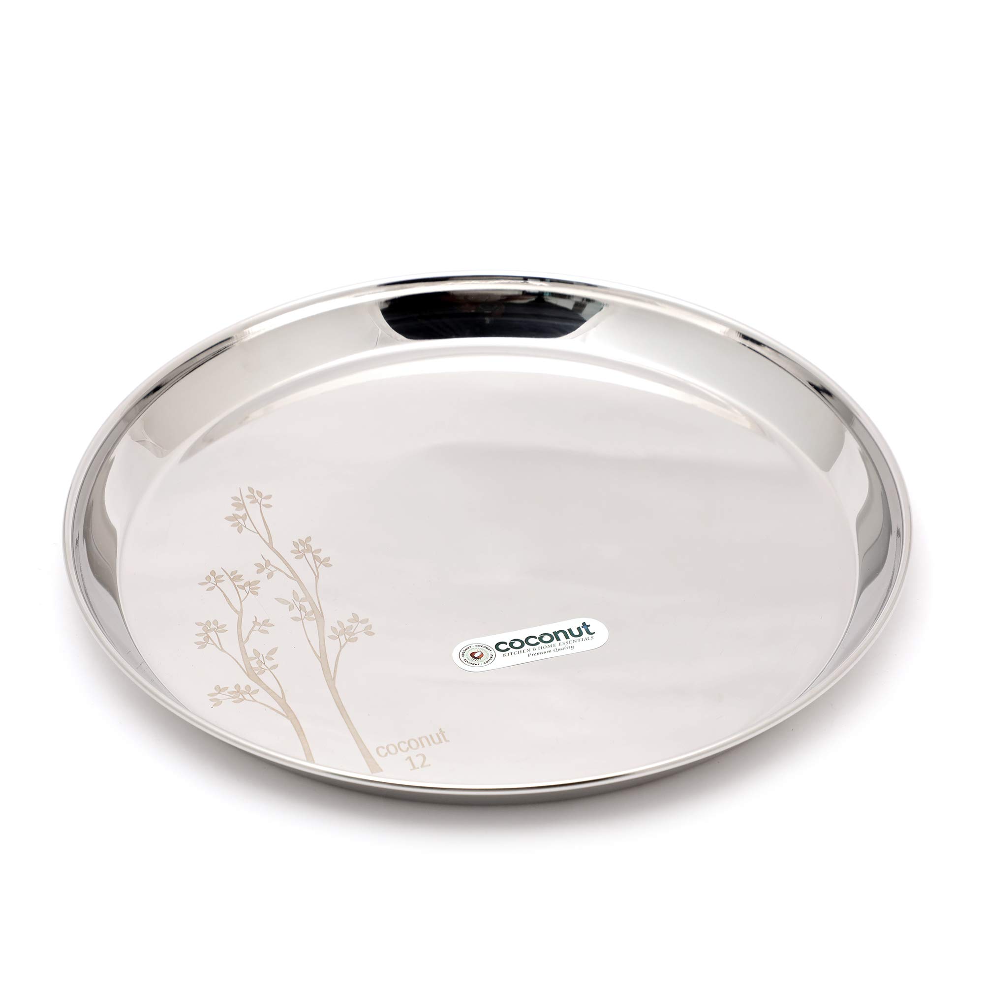 Coconut Stainless Steel Heavy Guage Laser Kanchan Bogi/Round Dinner Plates - 6 Pcs (Diameter 11 Inch)