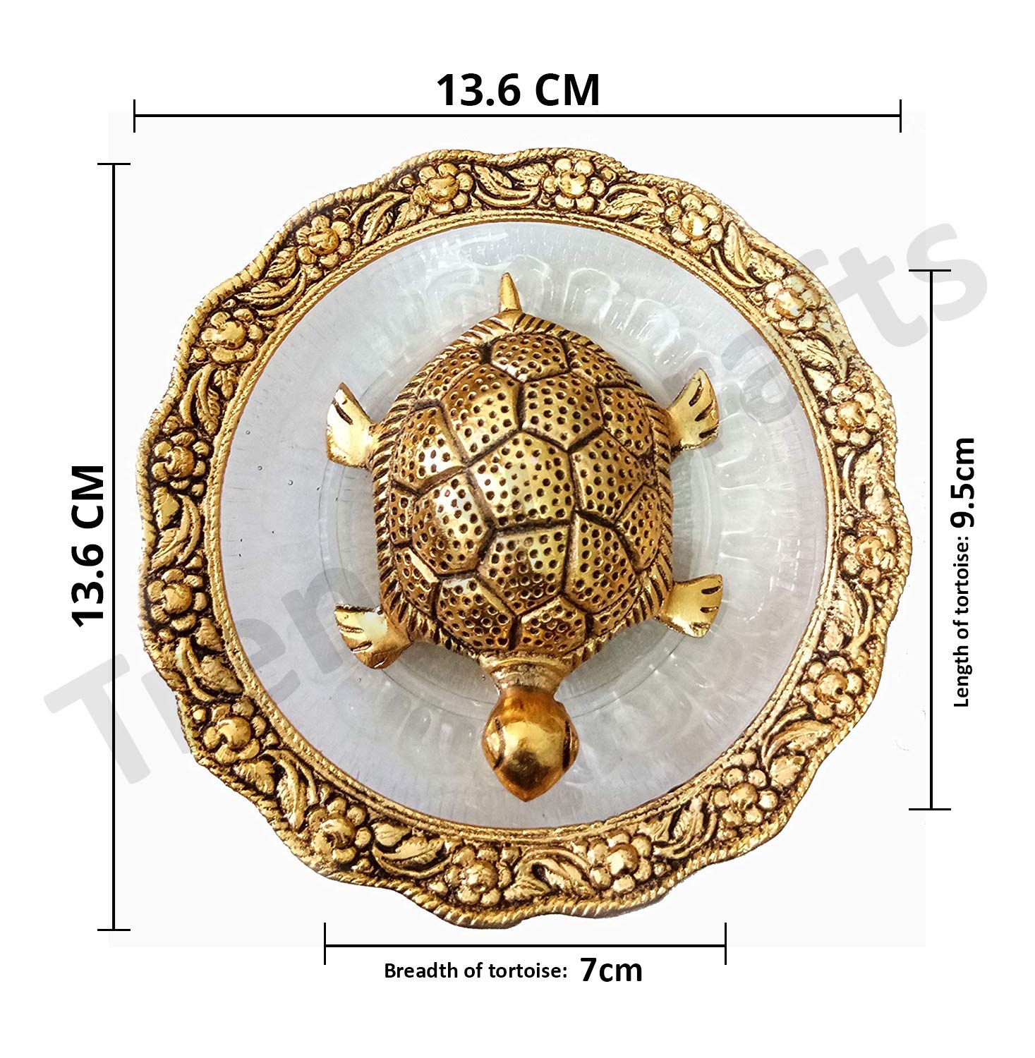 DHOKRA CRAFT Metal Feng Shui Tortoise On Plate Showpiece (Golden Diameter: 5.5 Inch)