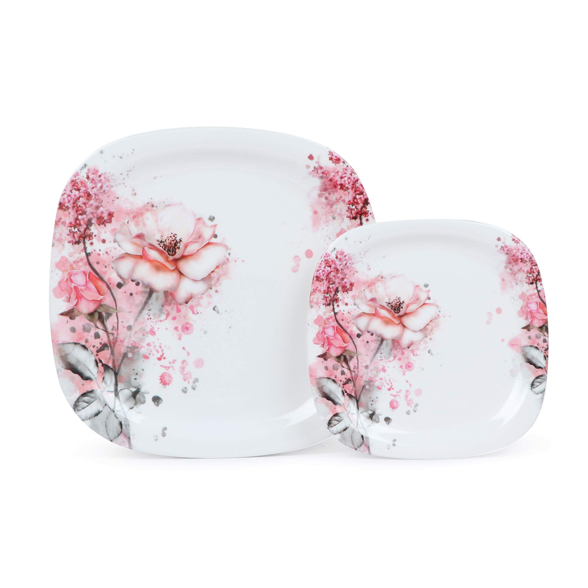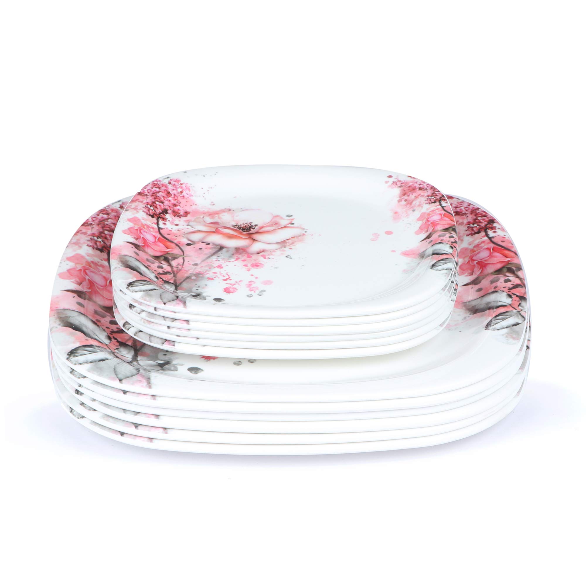 Golden Fish Melamine Square Full Dinner Plates & Quarter Plates (Pack of 12, Floral Print) (GF-F-QP-7-12)