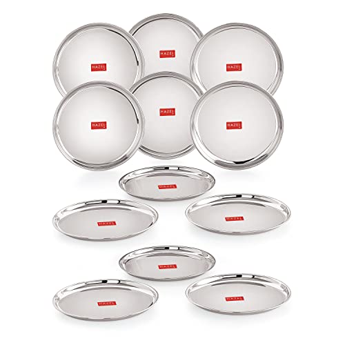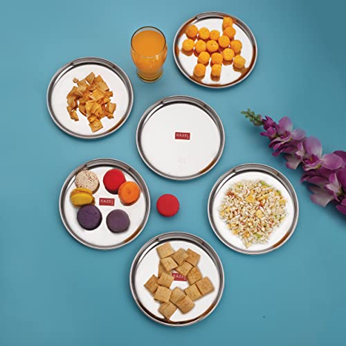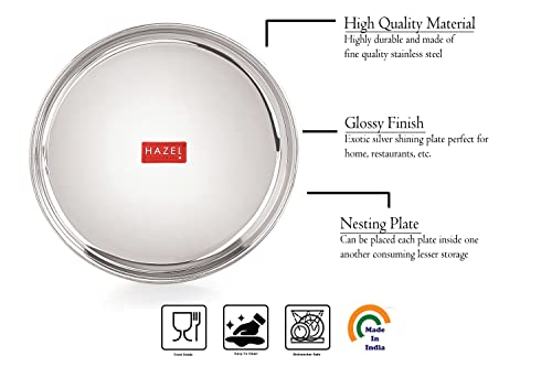 HomeKitchenServeware setsPlatesHAZEL Stainless Steel Breakfast Plate with Glossy Finish | Quarter Plates for Kids Serveware Tableware | Thali Plates for Kitchen | Serving Plates Set of 12, 23.5 cm