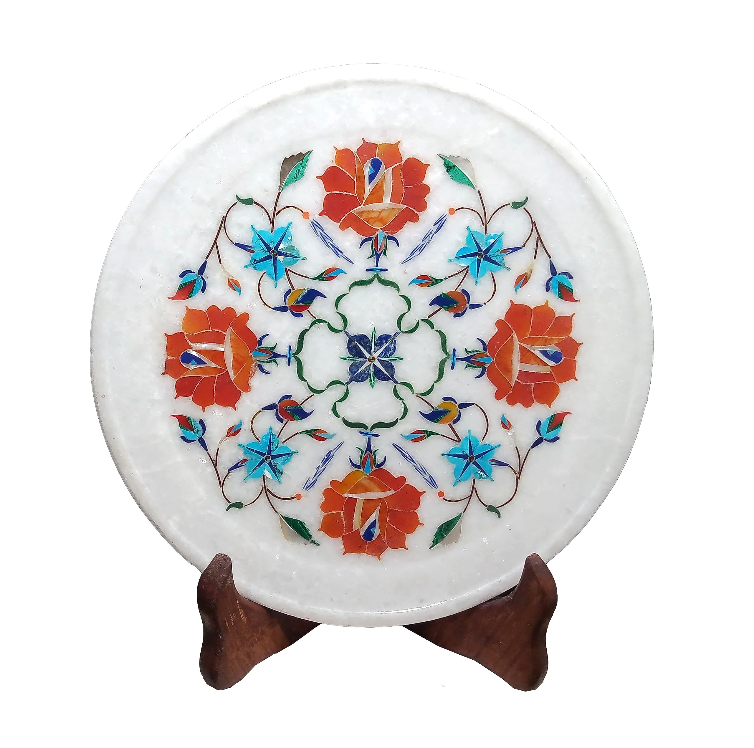 HomeKitchenServeware setsPlatesMARBLE INLAY ART AGRA - PACCHIKARI White Marble Plate Decorative Showpiece for Home Office and Perfect for Gifting. Size - 9 x 9 inch