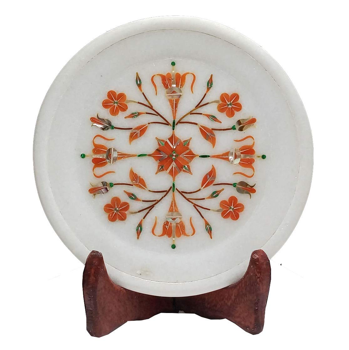 HomeKitchenServeware setsPlatesMARBLE INLAY ART AGRA - PACCHIKARI White Marble Plate for Decorative Showpiece in Home Office and Perfect for Gifting. Size - 5 x 5 inch