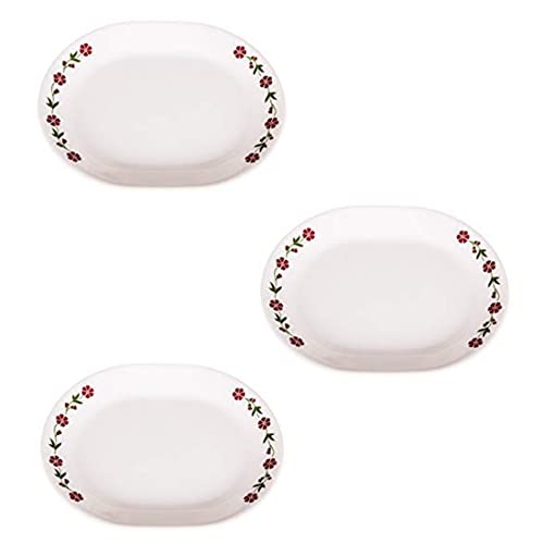 Corelle Essential Series Glass Microwave Safe Pack of 3 Oval Dinner Plate Serving Platter-Spring Pin