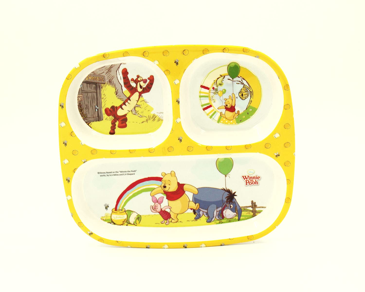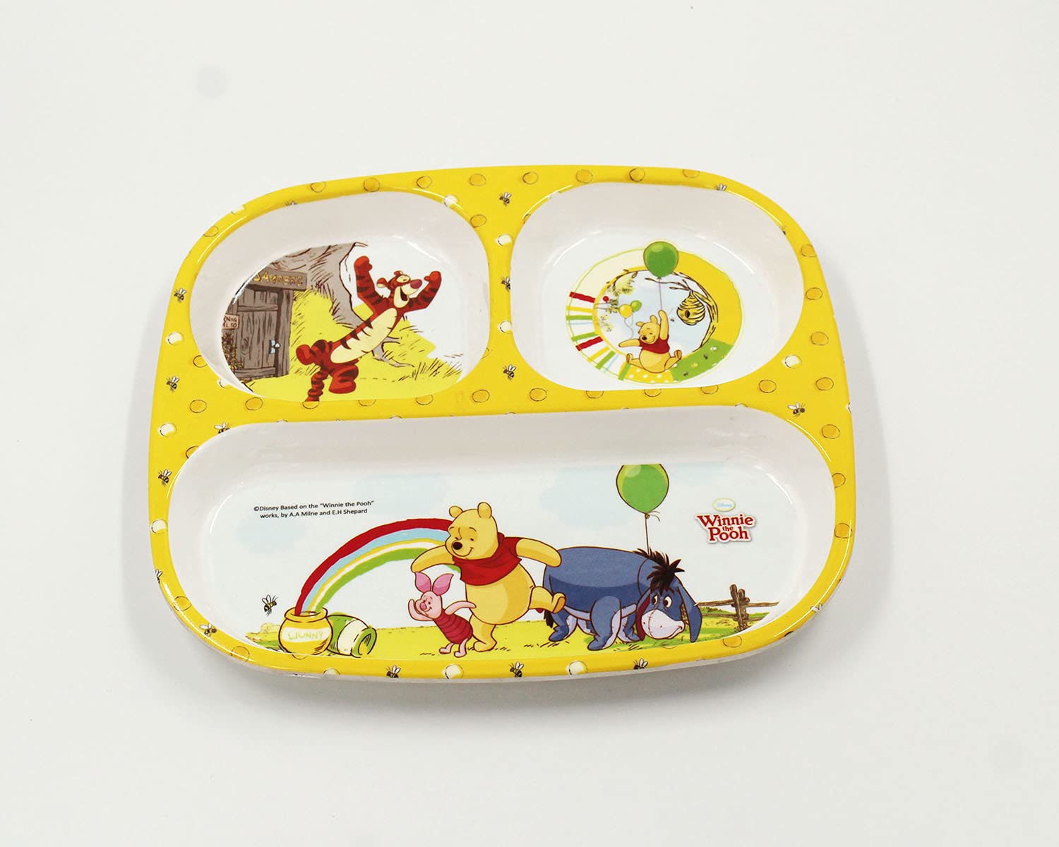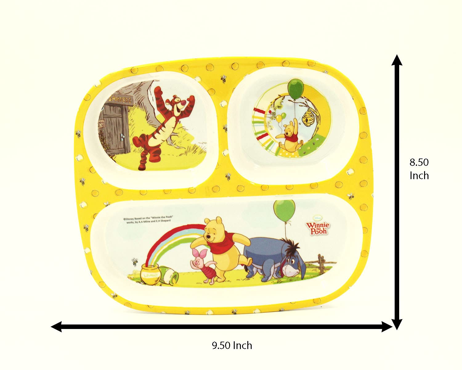 SAHARANPUR HANDICRAFTS Melamine Kids Plate | Rectangular 3 Section Multicolor Plate with Winnie The Pooh Prints | Food Serving Plate with Partition (Winnie The Pooh)