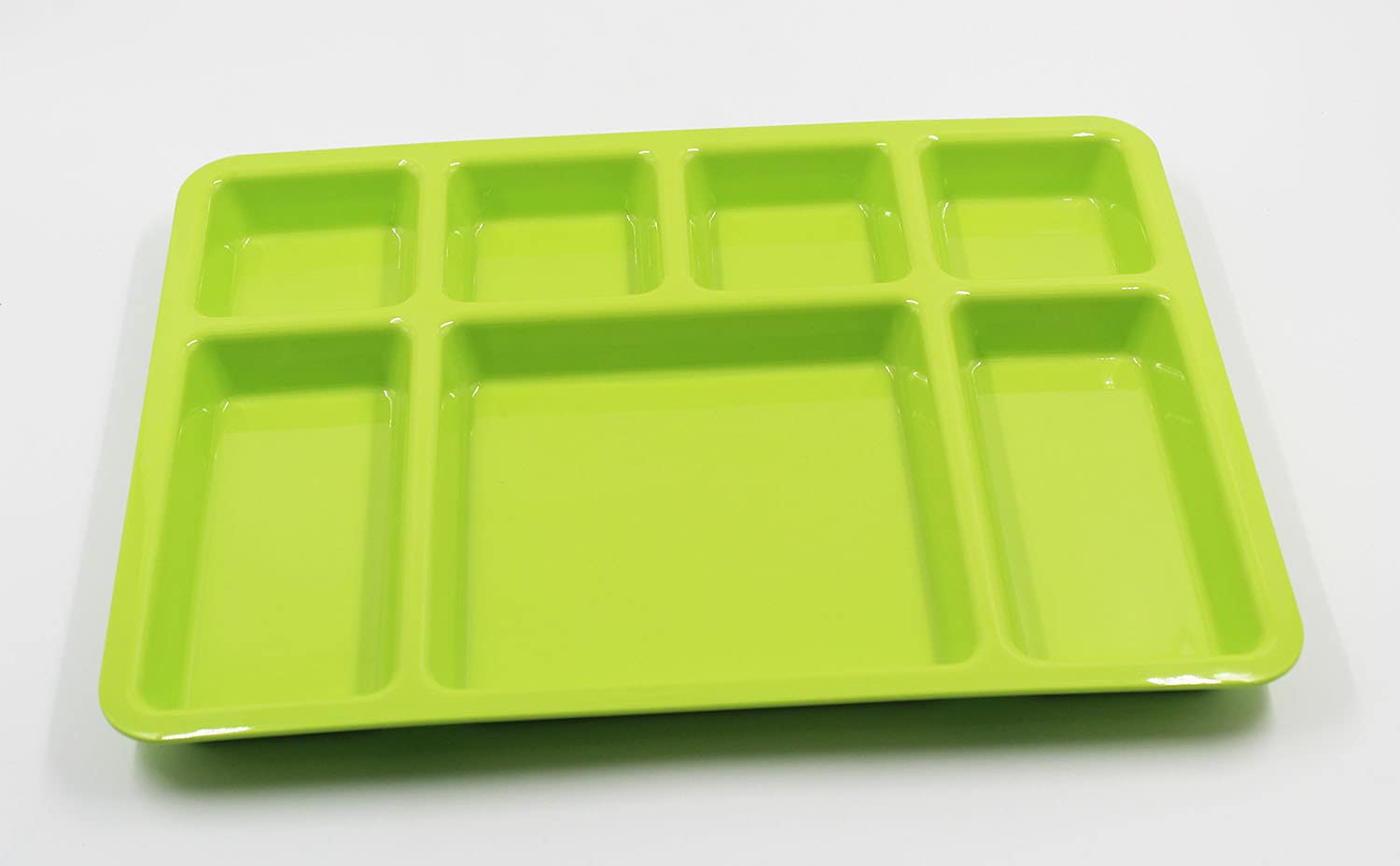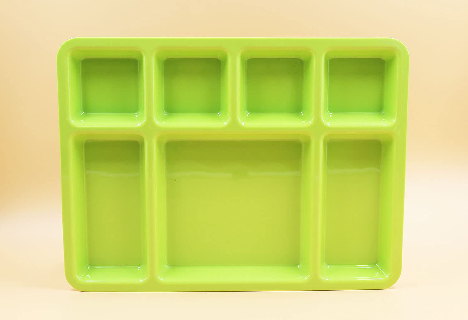 SAHARANPUR HANDICRAFTS Melamine Plate | Rectangular 7 Section Plate | Food Serving Plate with Partition (Green 7 Section Plate)