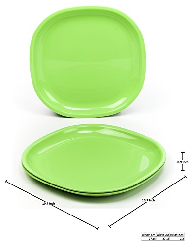 Signoraware BPA Free Square Plates for Dinner Lunch Breakfast, Food Grade, Reusable, Full meals Thali (Plastic, 10.7 Inches, Set of 3, Green, Dishwasher Safe, Microwave Safe)