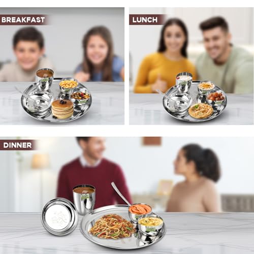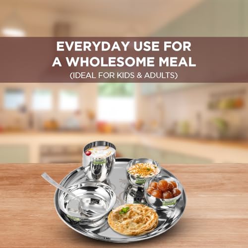 Kraft Classic Traditional Stainless Steel Dinner Set of 1 Thali - 6 Pcs | Premium, Elegant Design | Mirror Finish | Food Grade, Toxin Free | 2 Year Warranty - Silver