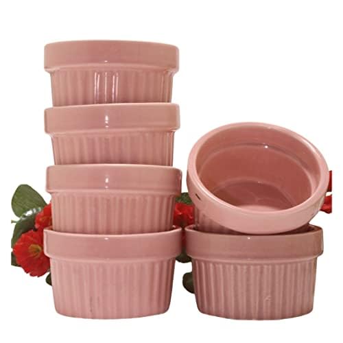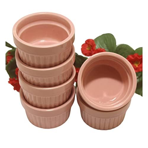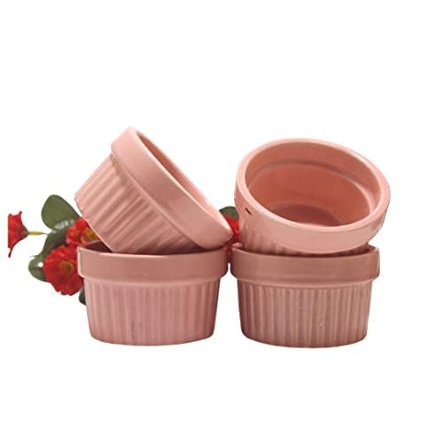 Ceramic 100ml Ramekin Bowl Oven OTG Microwave Convection & Dishwasher Safe for Baking Dessert or Serving (Pink 4)