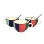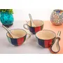 KHURJA POTTERY Ceramis Handpainted Soup Bowl With Spoon Set of 3 300ML