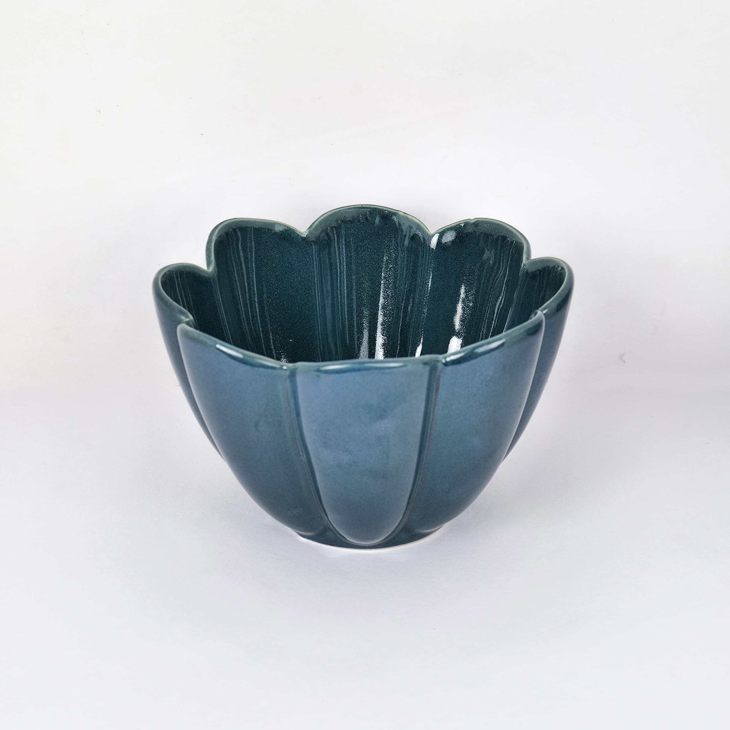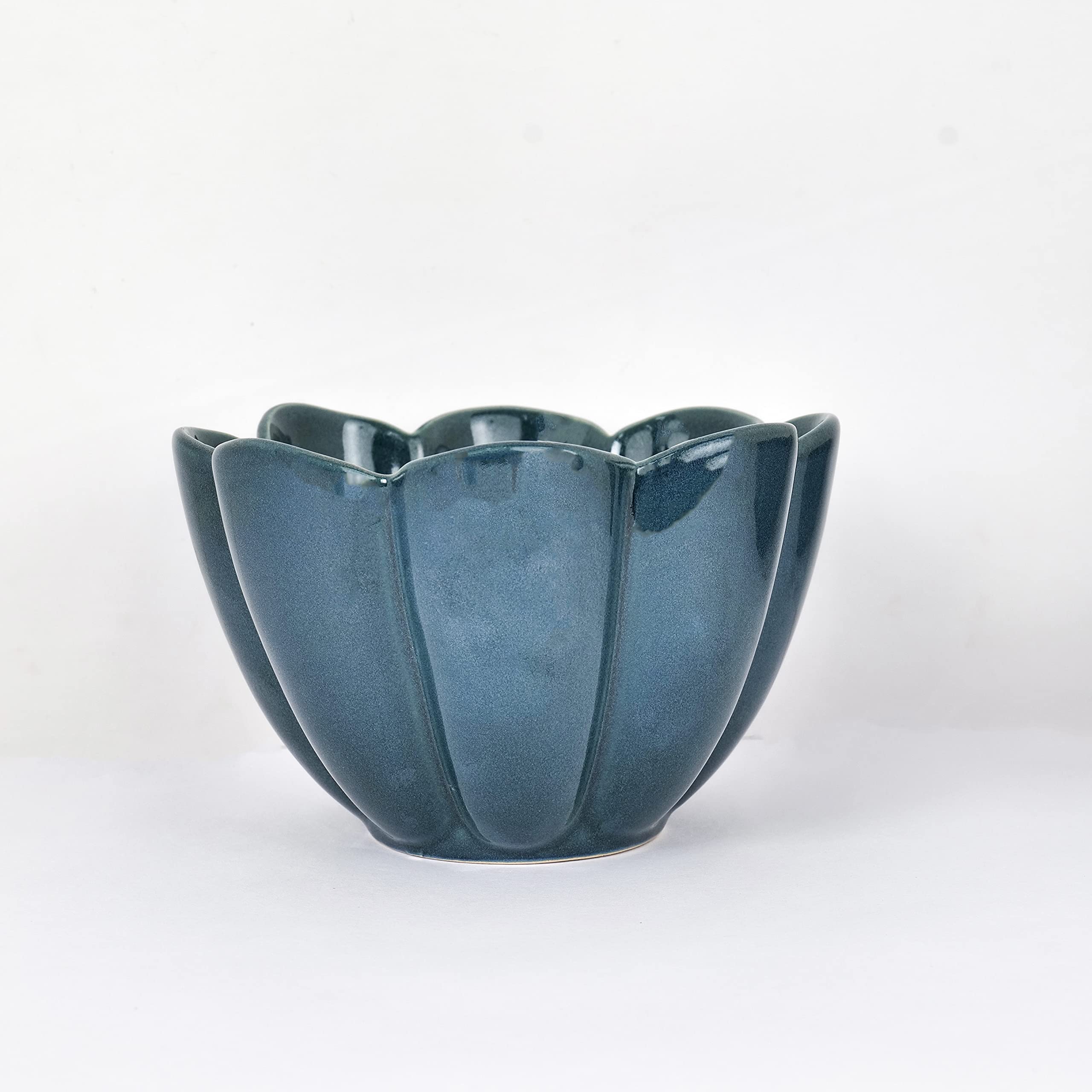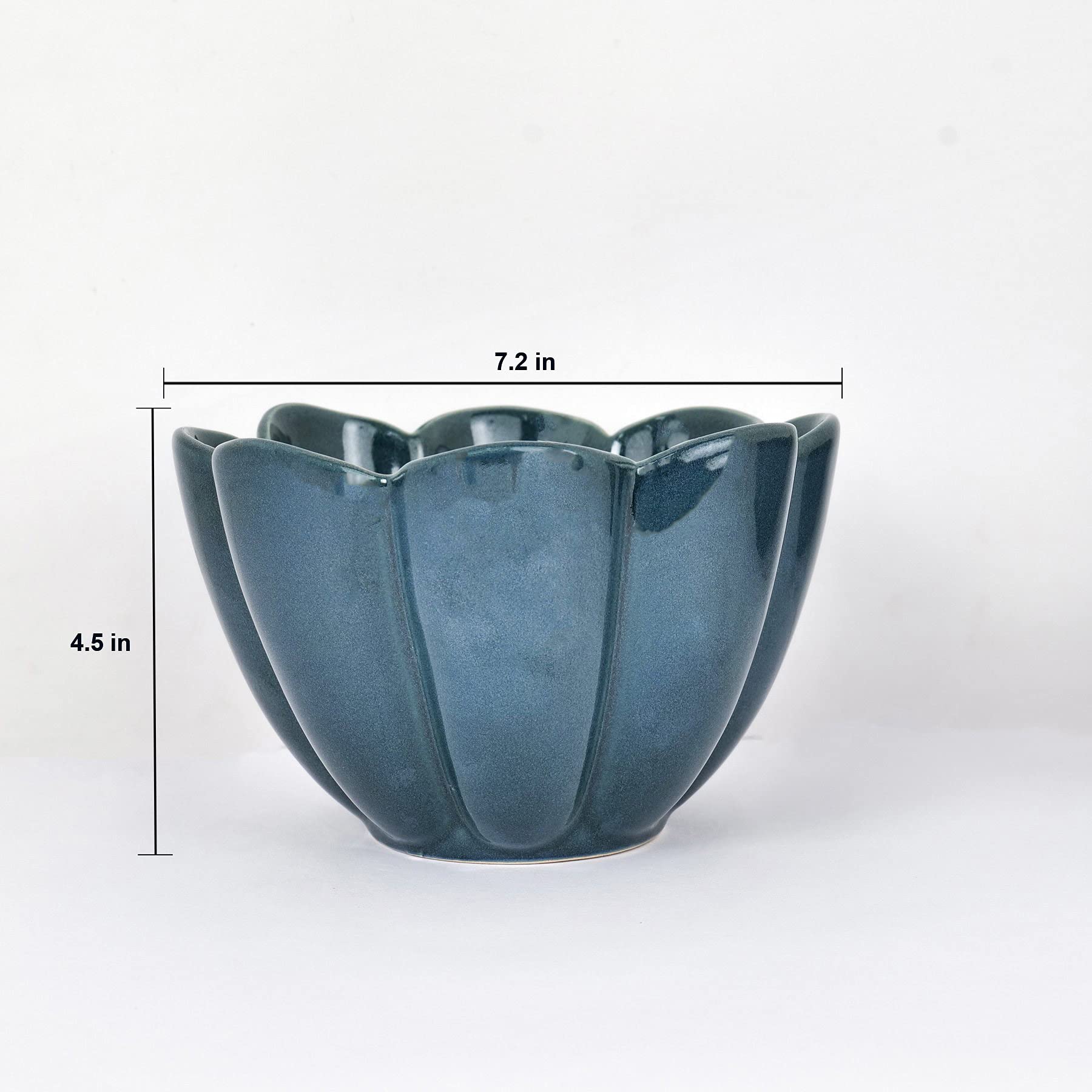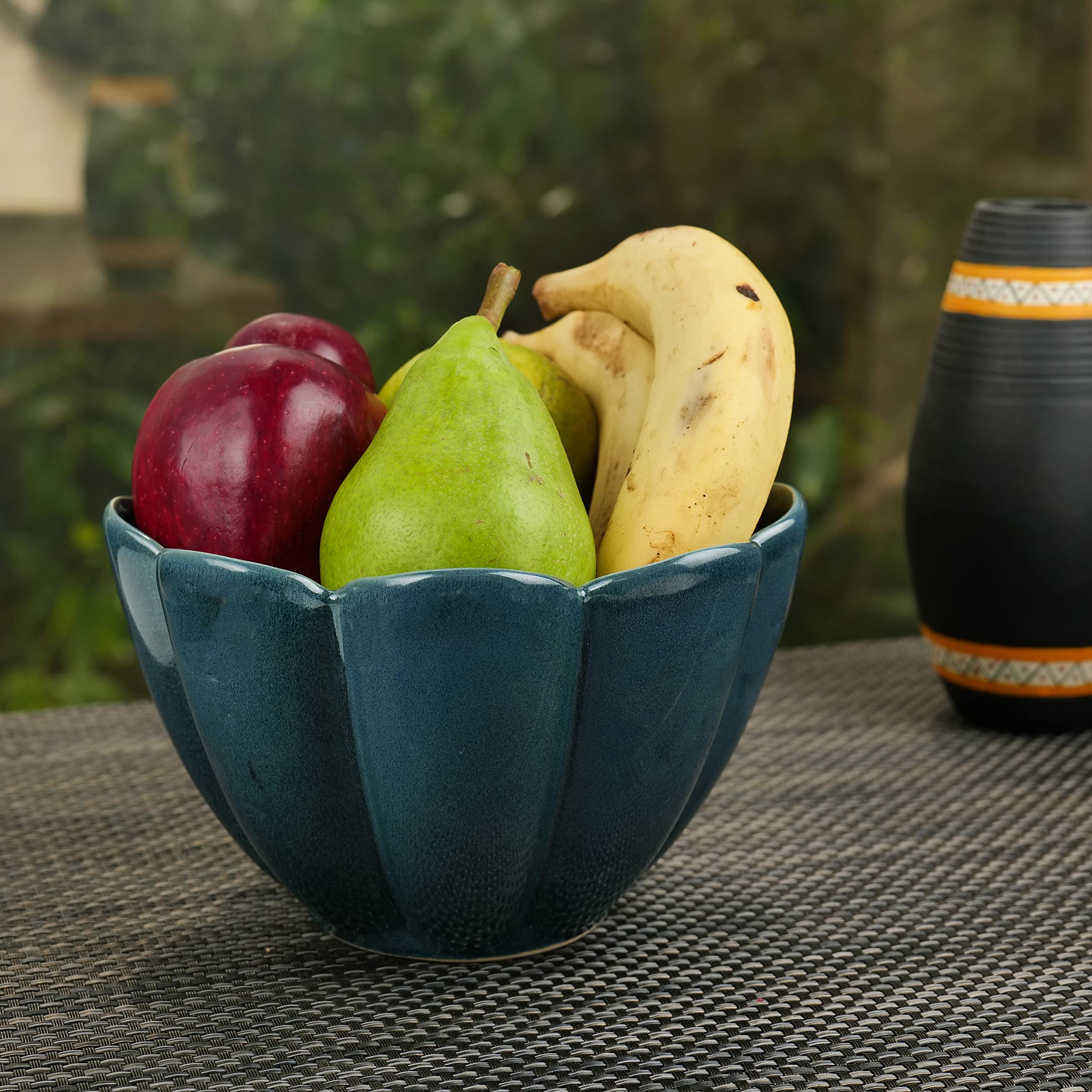 HomeKitchenServeware setsBowlKHURJA POTTERY 'Flowered Blue' Fruit Bowl Ceramic Bowl Set Ceramic Bowls for Kitchen Microwave and Dishwasher Safe (Dark Olive Green 1.4 L)