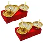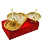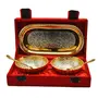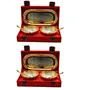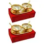 RAJASTHANI METAL HANDICRAFTSGerman Silver Brass Floral Four Bowl with Four Spoon and with Two Tray with Beautiful 2 Velvet Box Packing for Dry Fruit Chocolate Sweet HomeDecor