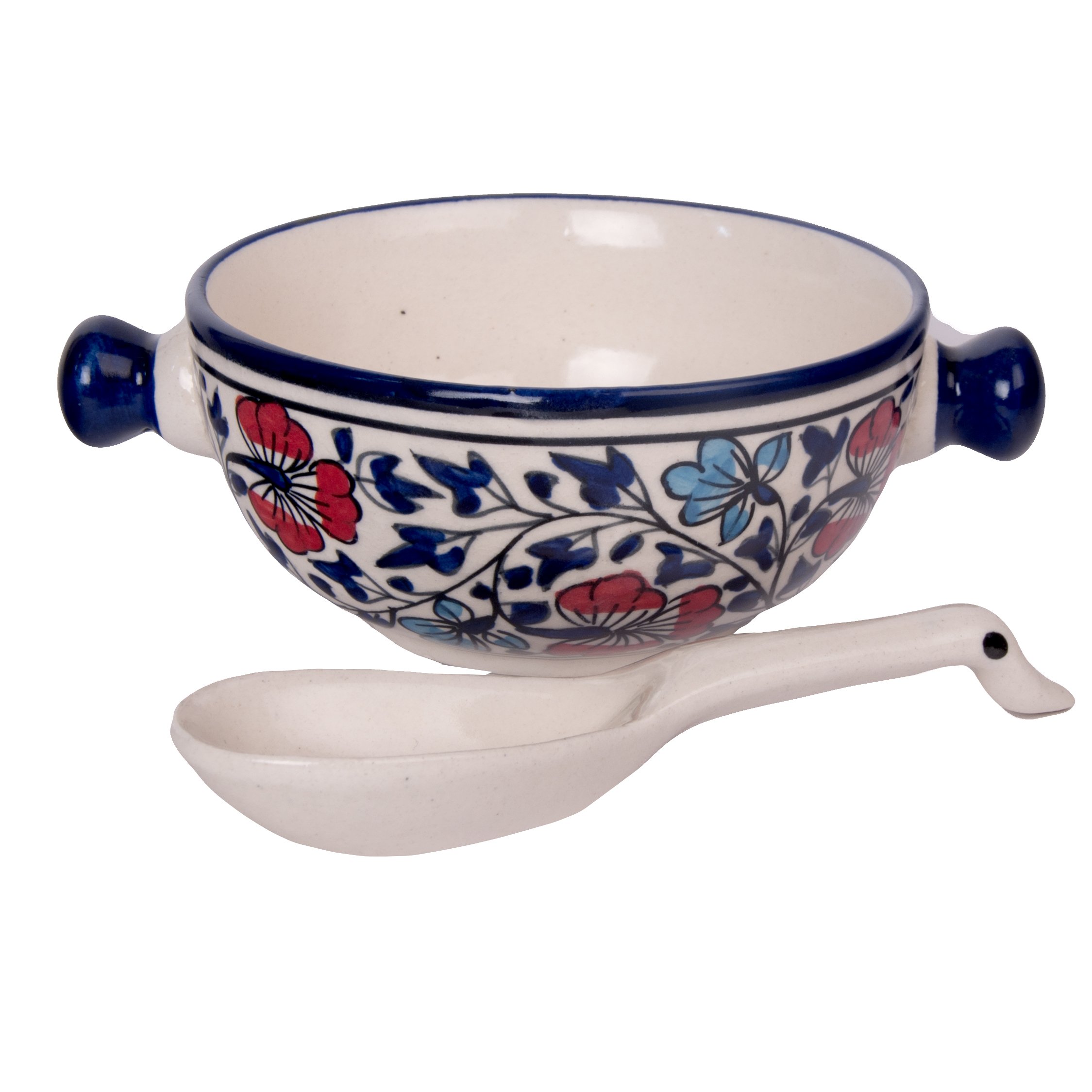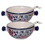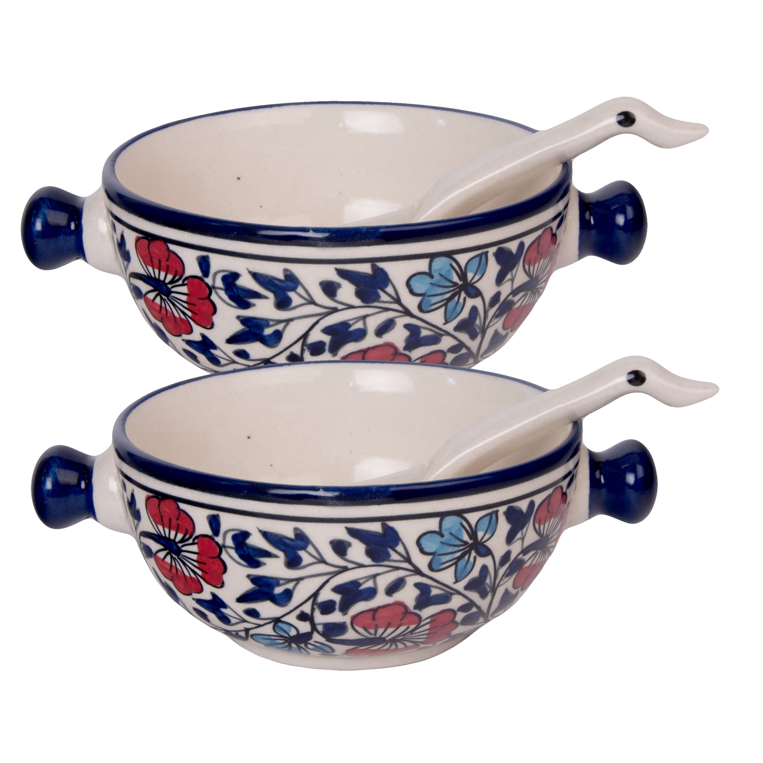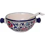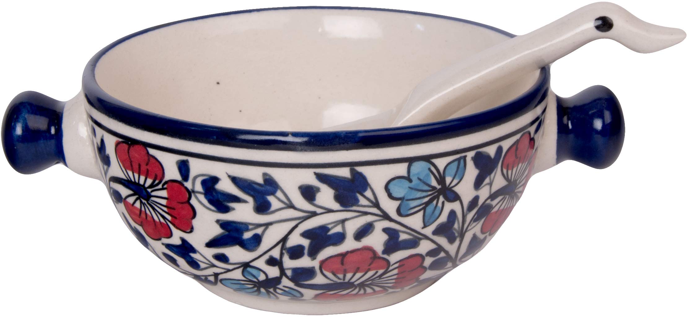 HomeKitchenServeware setsSpoonsKHURJA POTTERY Soup Bowl with Handle Ceramic Bowl with Spoon Set of 2 | Ceramic Serving Bowl Set for Soup Cereal or Nasta | Floral Design Multi Color