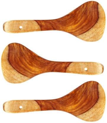 SAHARANPUR HANDICRAFTS Handmade Set of 3100% Good Rice Spoons Beige & Brown Color for Kitchen with Special Price