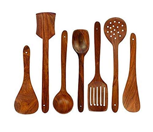 SAHARANPUR HANDICRAFTS Kitchen Speacial by"Hand Crafted Wooden Non sticy Spoons Diwali Gift Item sheesham Wood 7 pc Set.