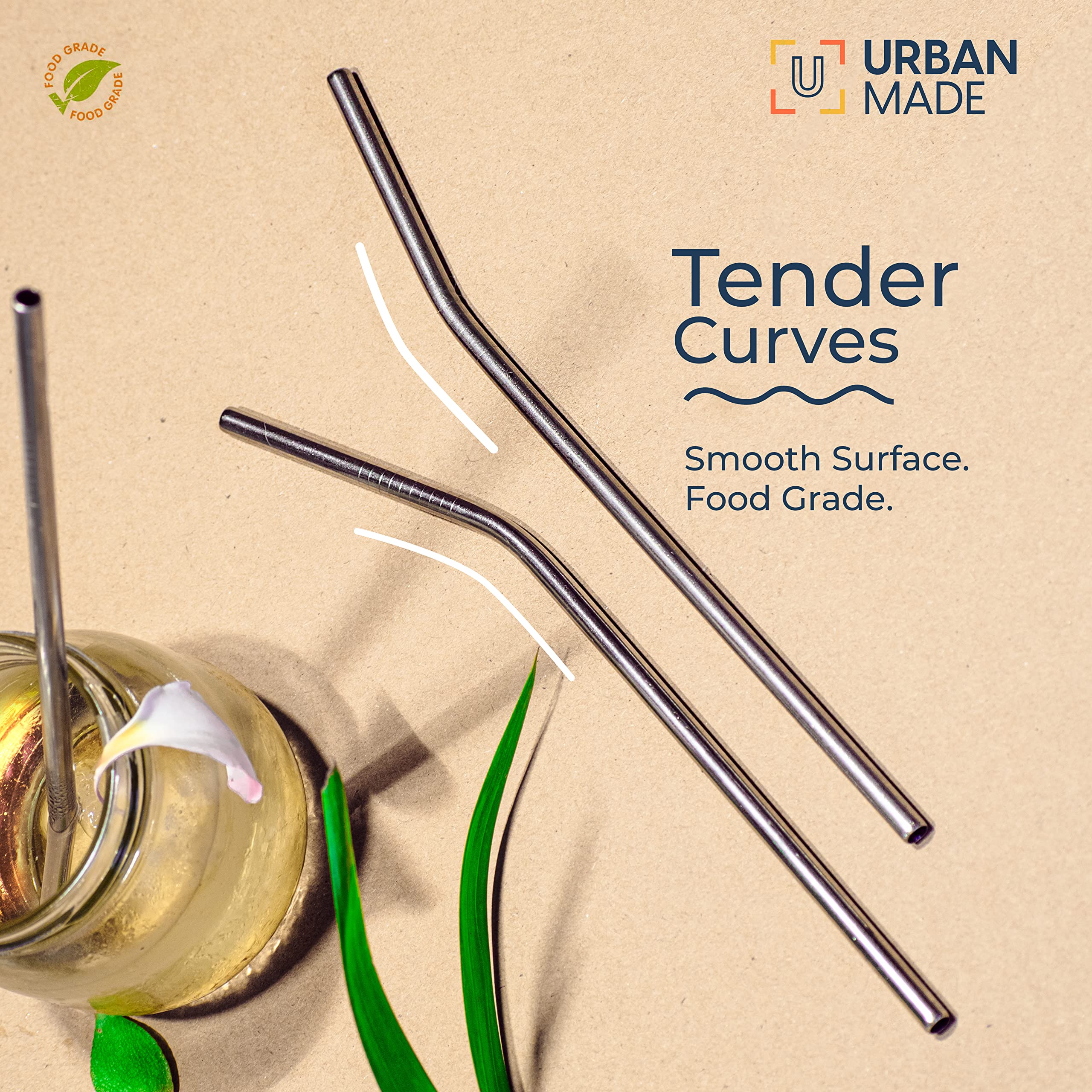 UrbanMade Straw Stainless Steel Straw for and Adults Reusable Metal Straw Set with Cleaning Brush Long Steel Straws for Drinking Juice & Drinks Reusable Straw Pipe - (2-Straight 2-Bend 1-Brush)