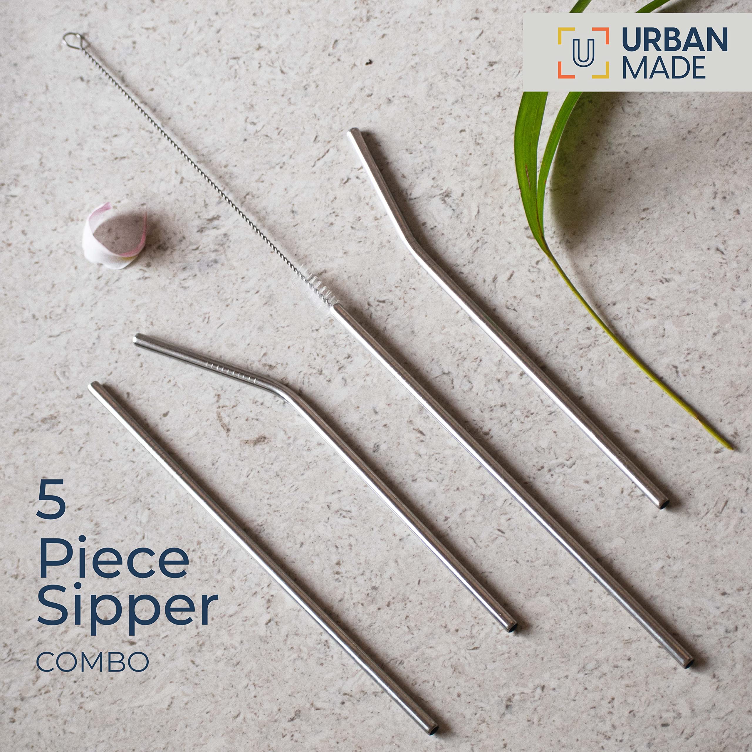 UrbanMade Straw Stainless Steel Straw for and Adults Reusable Metal Straw Set with Cleaning Brush Lo