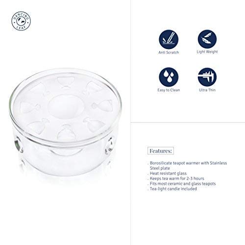 Features : Borosilicate teapot warmer Heat resistant glass Keeps tea warm for 2-3 hours Fits most ceramic and glass teapots Tea-light candle included.