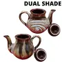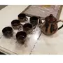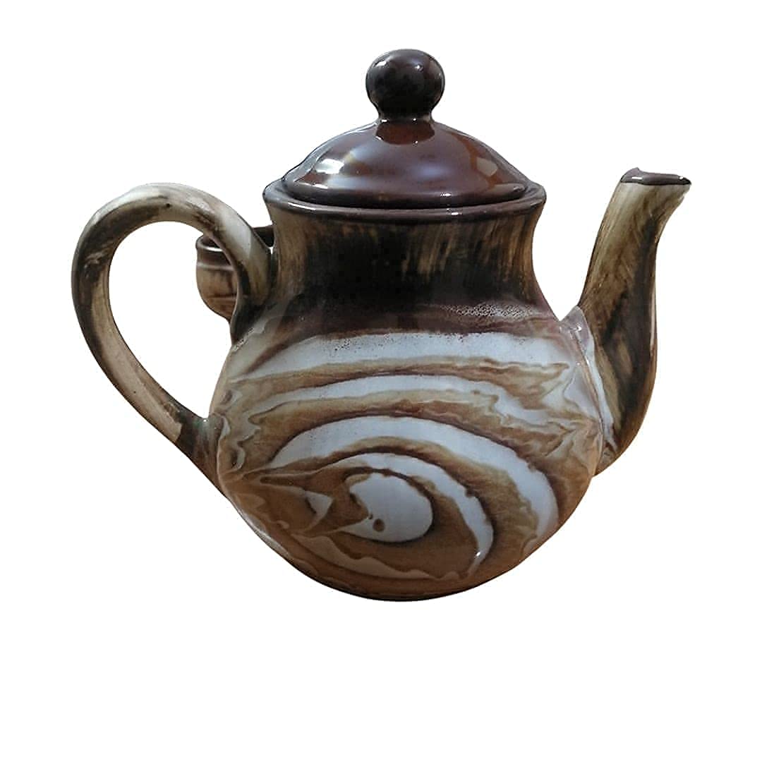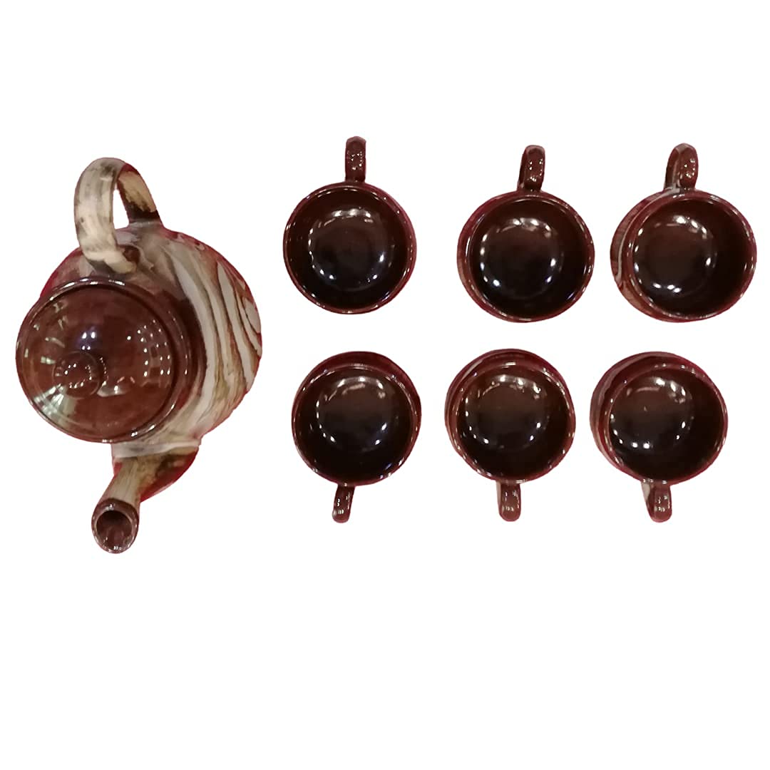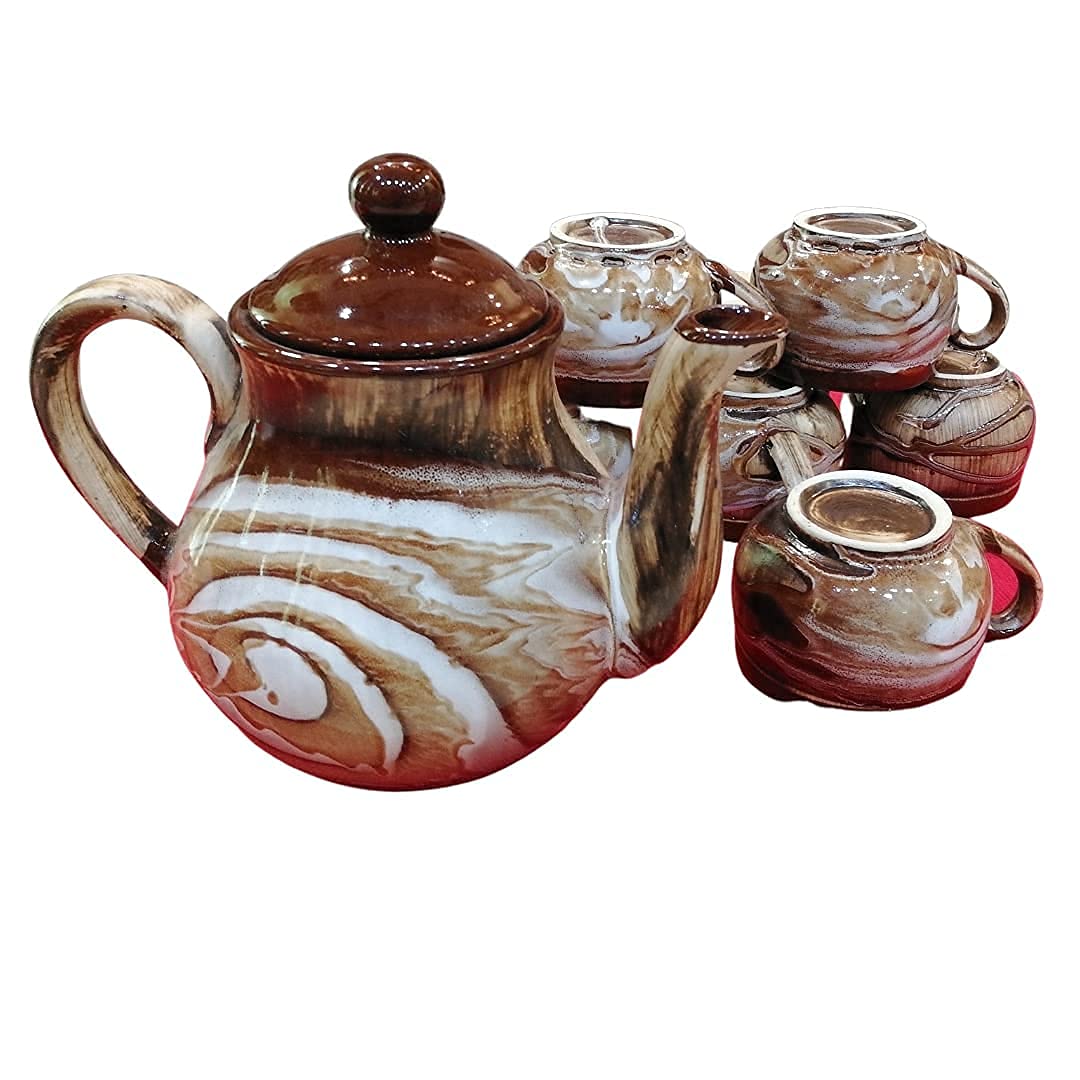 KHURJA POTTERY Ceramic Tea Set Kettle (Tea Pot) with 6 Cups Set Each Cup 150 ML Brown | Handmade | Microwave Safe