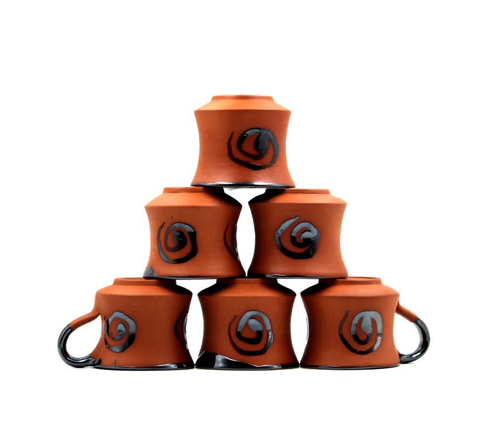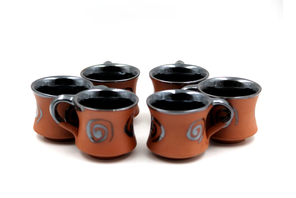 HomeKitchenServeware setsTea SetSTONE WORK Handmade Ceramic Cotted Inside Terracotta Coffee Cup with Dynamic Colour Printed Outside Ideal for Home Use Or Gifting Purpose.-Size (H*W*D:6*7*4) cm