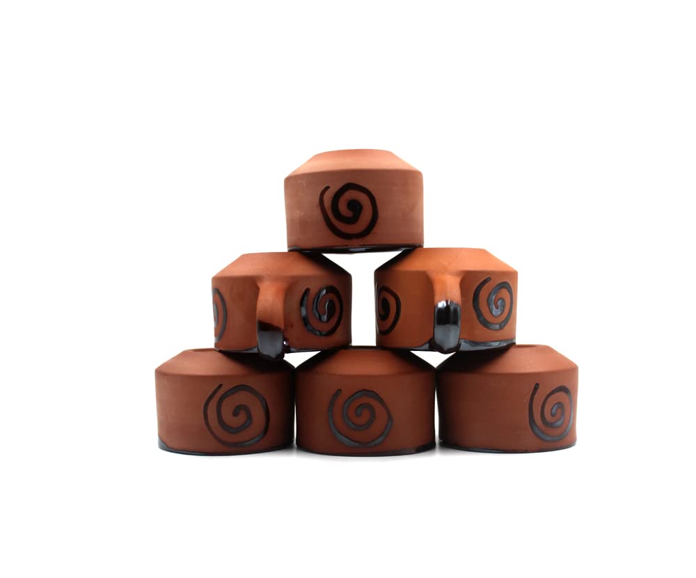 HomeKitchenServeware setsTea SetSTONE WORK Handmade Ceramic Cotted Inside Terracotta Coffee Cup with Dynamic Colour Printed Outside Ideal for Home Use Or Gifting Purpose.-Size (H*W*D:6*8*4) cm