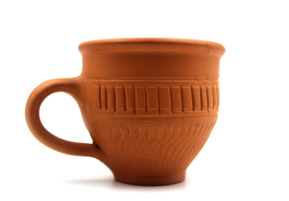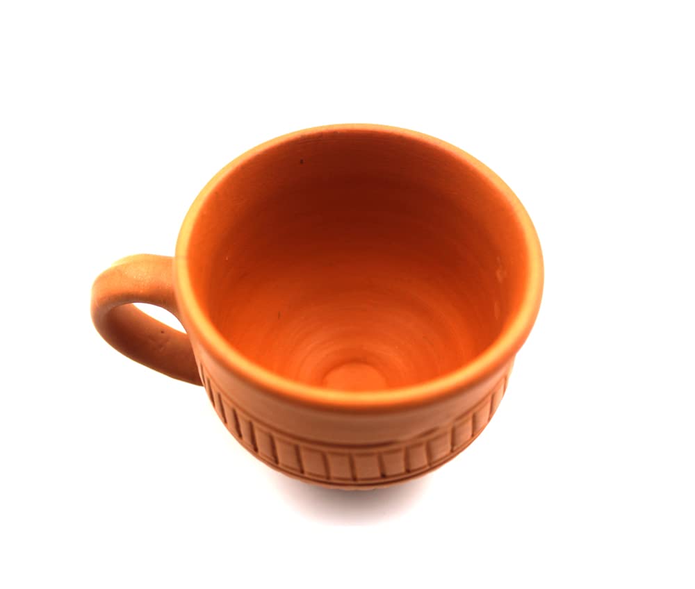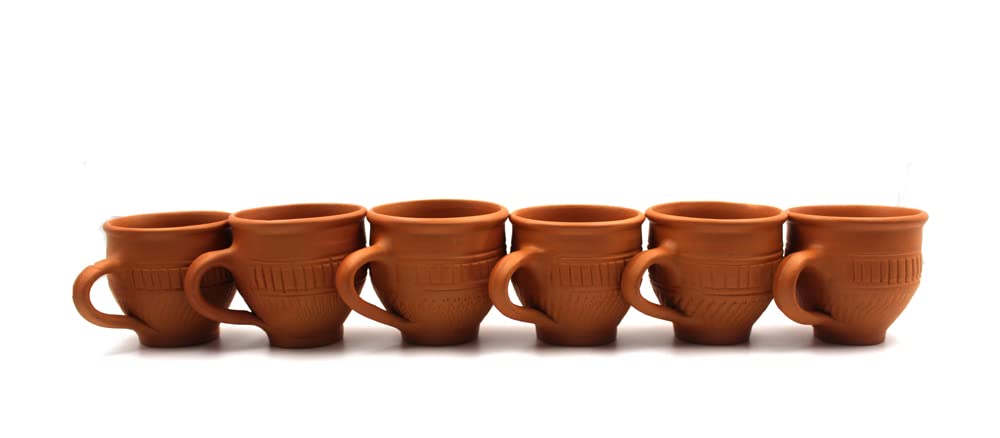 STONE WORK Terracotta Clay Tea Cups - Set of 6 Earthen Brown Round and Oval Mix Design - 120 ml