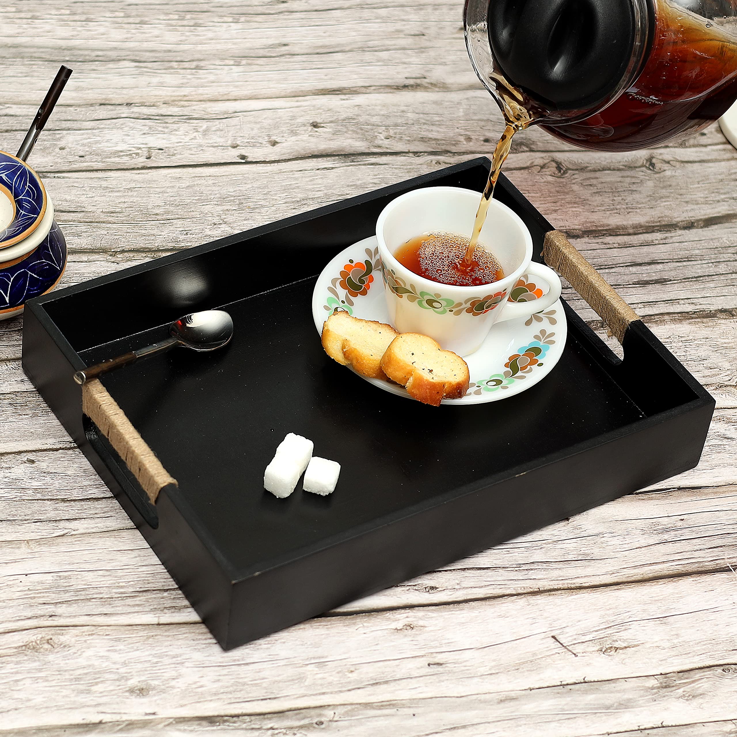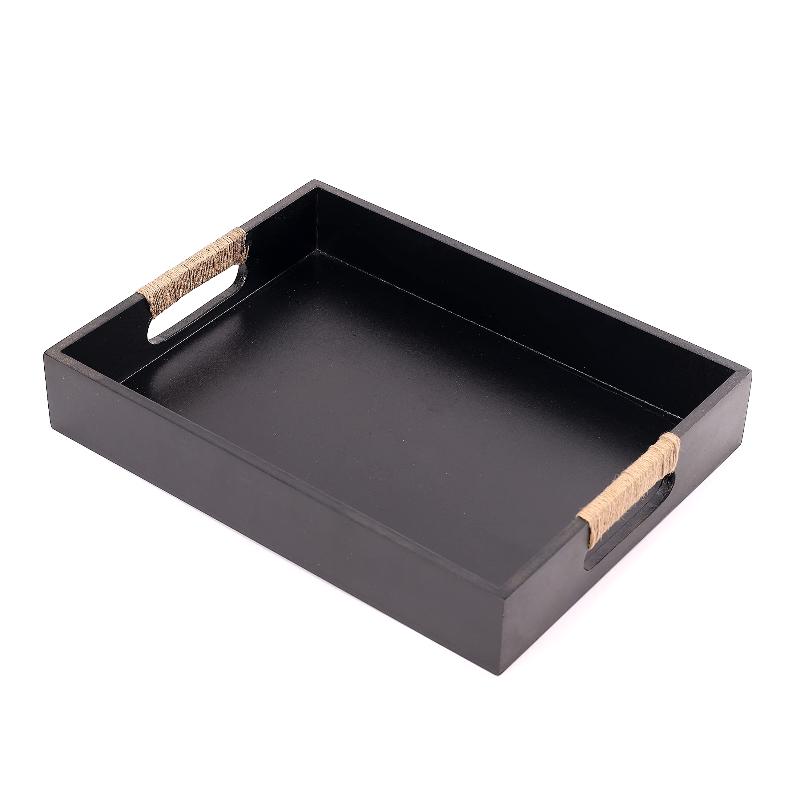 HomeKitchenServeware setsTraySAHARANPUR HANDICRAFTS Black Deco Painted Multipurpose Tray in MDF | Serving Tray for Home & Dining Table | Multipurpose Tray | Water & Heat Resistant Durable (Sutli Black 12x8)