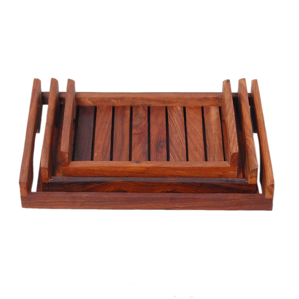 HomeKitchenServeware setsTraySAHARANPUR HANDICRAFTS Sheesham Wood Tray Set of 3 Coffee Tray Water Tray Serving Tray Beautiful Designing Tray Wood Set of Three Size (14x10)(12x9)(10x7)