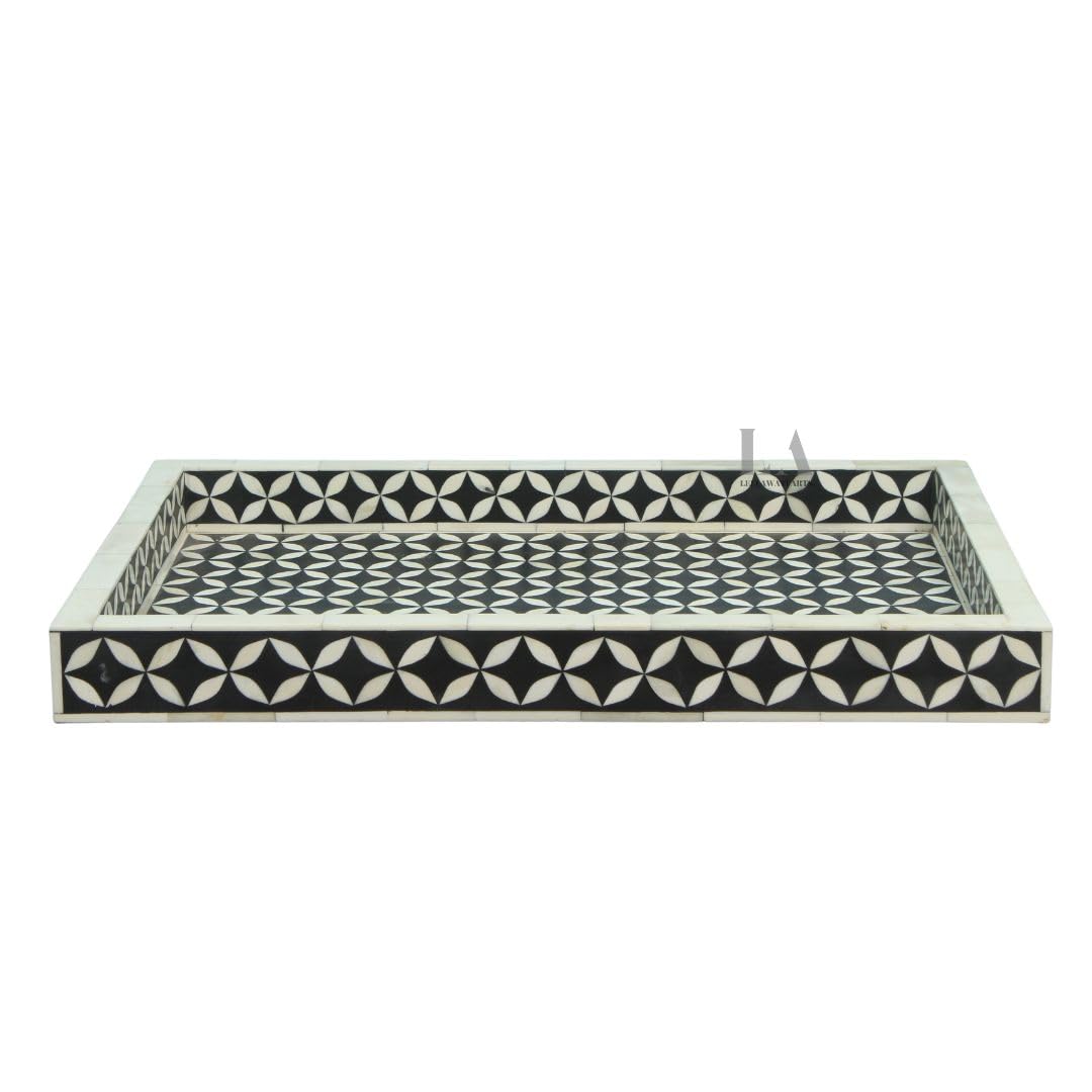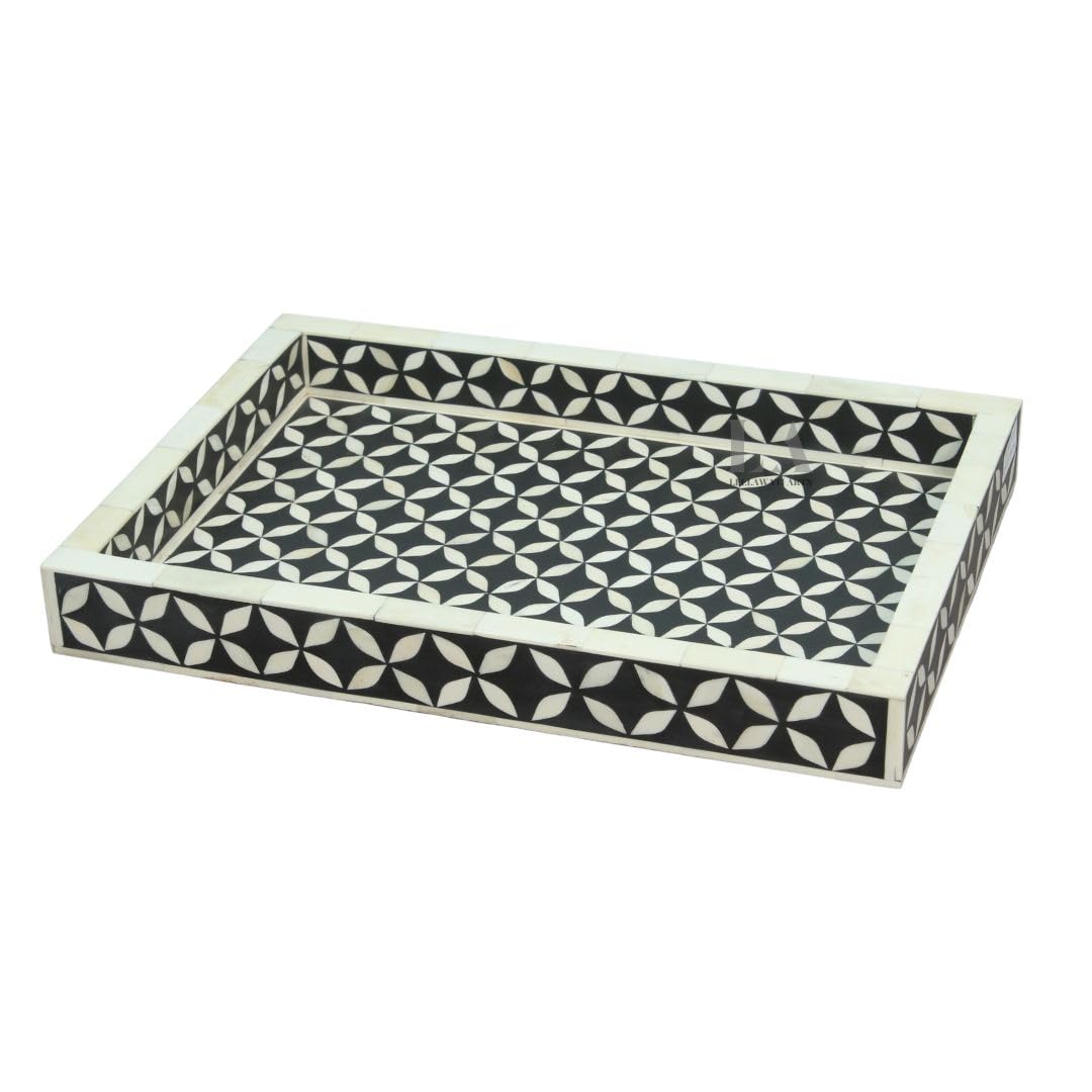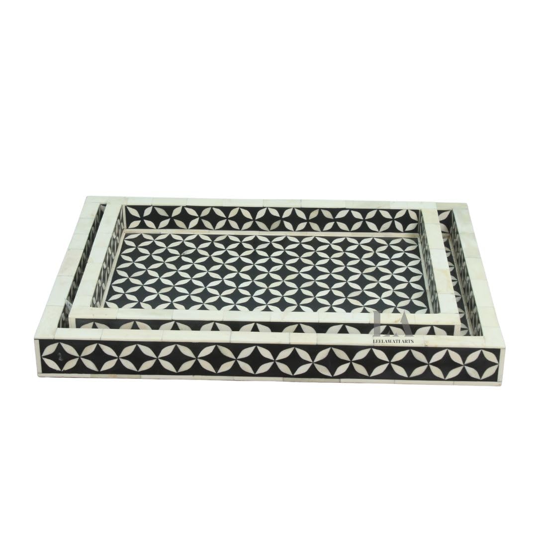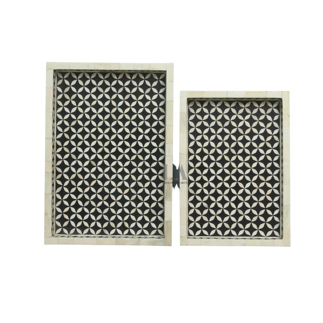 HomeKitchenServeware setsTrayWOOD BONE INLAY PRODUCTS Handcrafted Round Blue Serving Tray - Ottoman Bone Inlay Floral Pattern/Decorative Tray (Pack of 2)