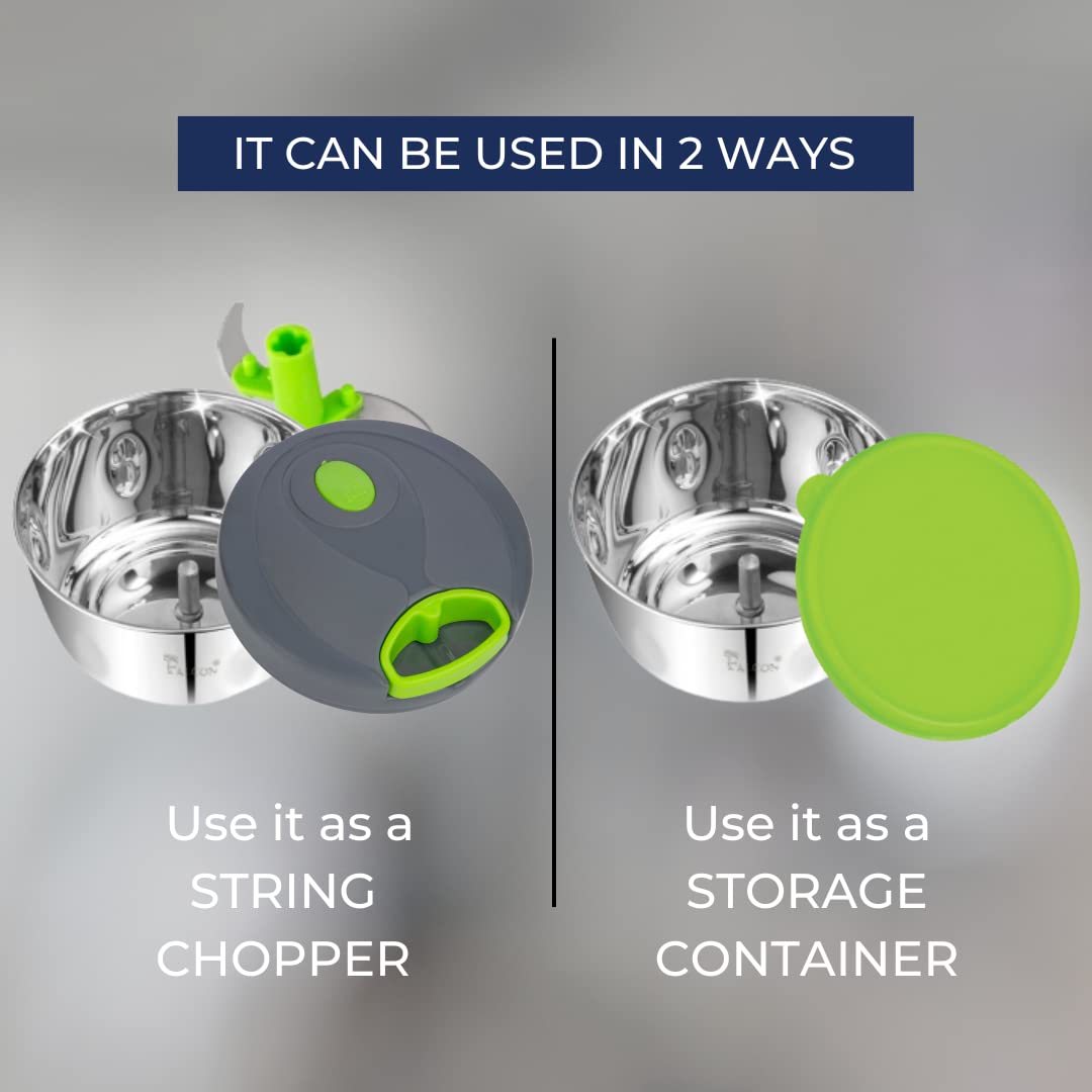 HomeKitchenKitchen ToolsChoppersPDDFALCON Food Grade Stainless Steel Vegetable Chopper Compact Design with 3 Blades Includes Extra BPA-Free Lid for Chop & Store Handy 450ml Container (Green)