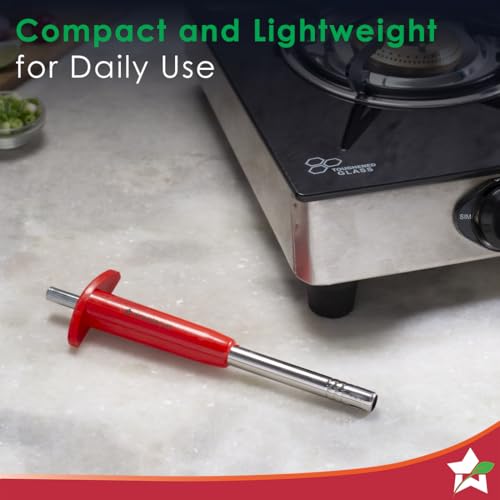 Wonderchef Stainless Steel Gas Igniter, Long Lasting, Rust Proof, Unbreakable, Soft & Long Grip, Red