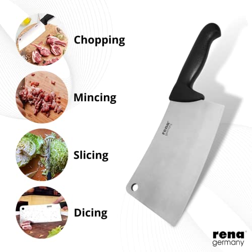 rena germany - Meat Chopper Butcher Knife - Meat Cleaver & Slicing Knife - Chinese Chopper Knife - 7 Inch, Stainless Steel, Black