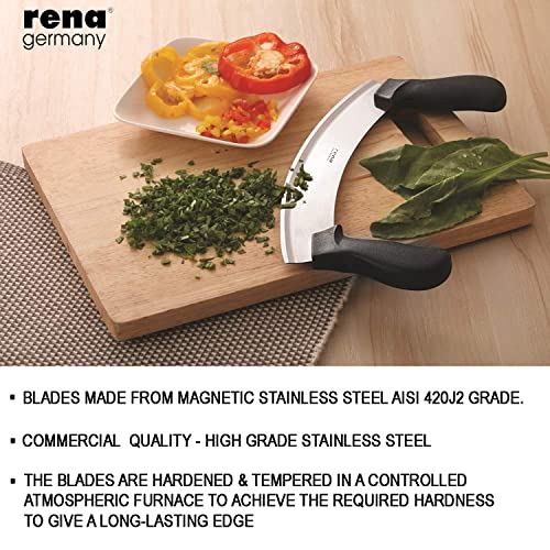 Rena Germany - Pizza Cutter - Pizza Slicer - Mezzaluna / Mincing Knife - Double Handle Ideal for Min