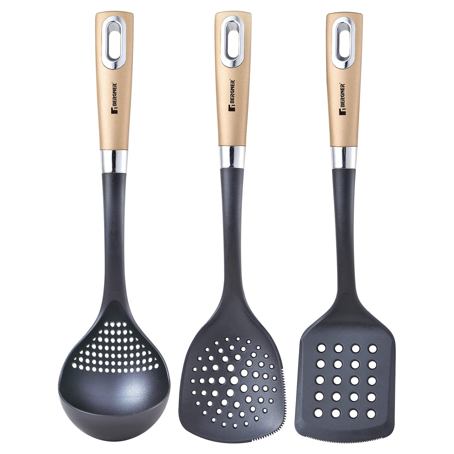 Bergner Cento 3Pc Nylon Kitchen Tool Set Slotted Turner Ladle Skimmer Black